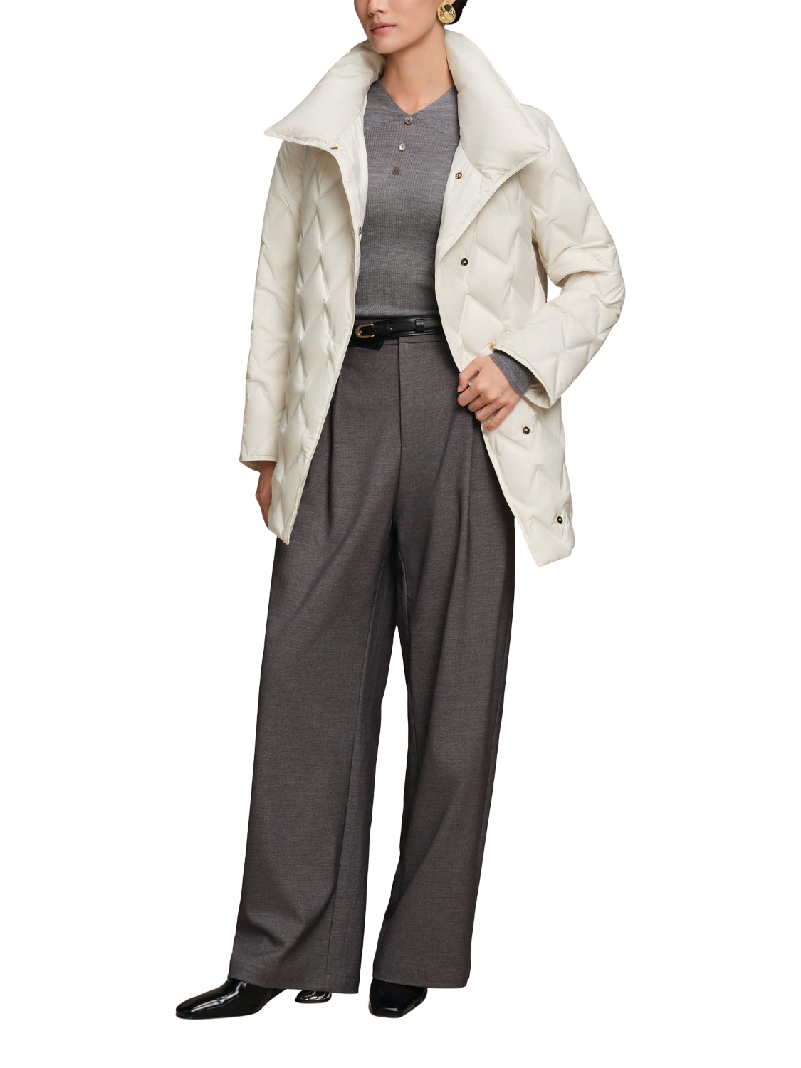 Look the part from morning meetings to evening strolls with this waist-length jacket, designed to balance warmth and refined style. A belted lapel collar adds a tailored edge, while 700+ fill power premium goose down offers lightweight insulation with exceptional loft and comfort. Crafted from ultra-fine, soft-touch fabric, it feels light yet dense, delivering warmth without bulk. Direct-fill technology ensures even distribution and prevents leakage, creating seamless insulation that’s built for lasting wear and polished appeal.