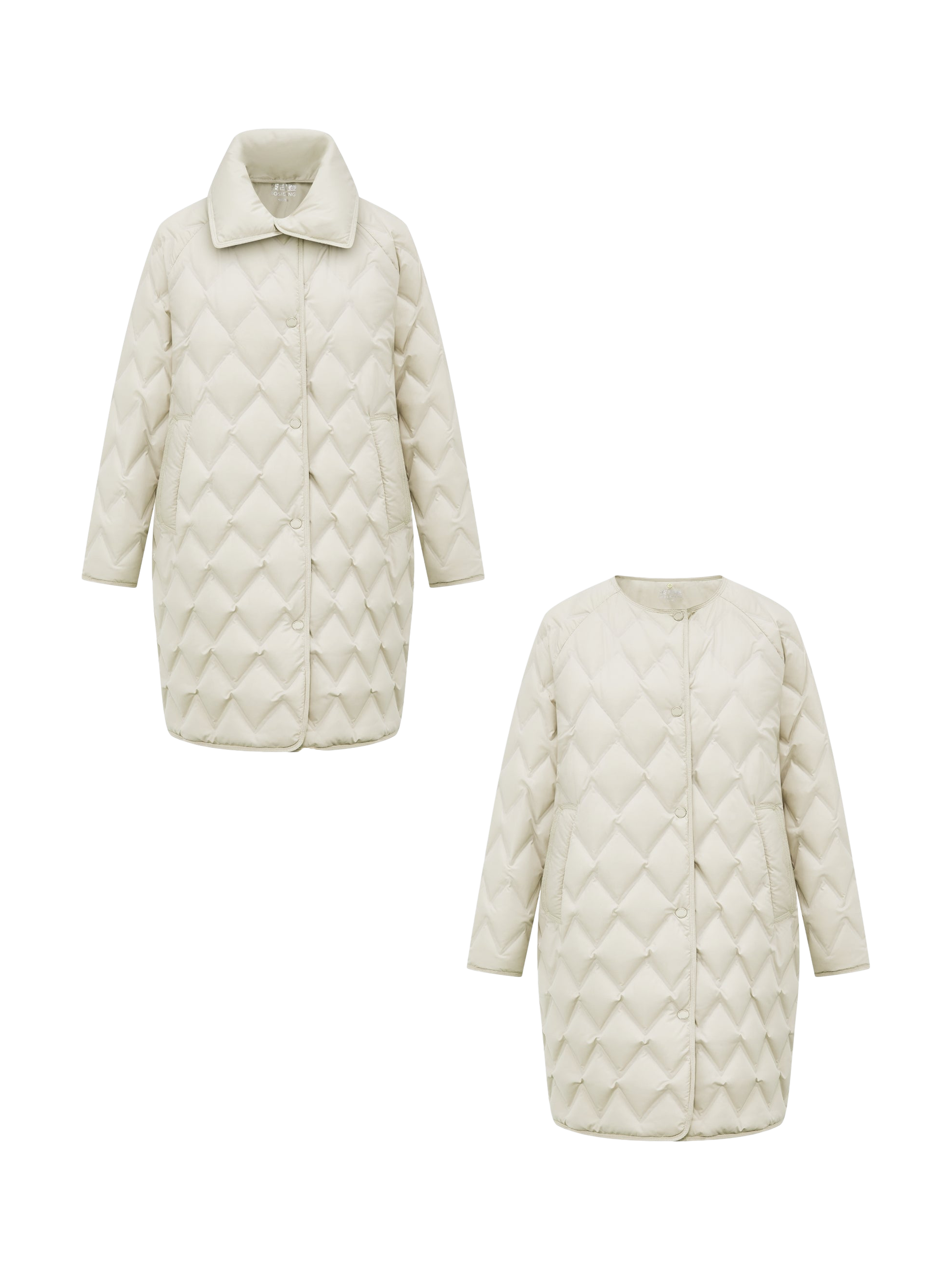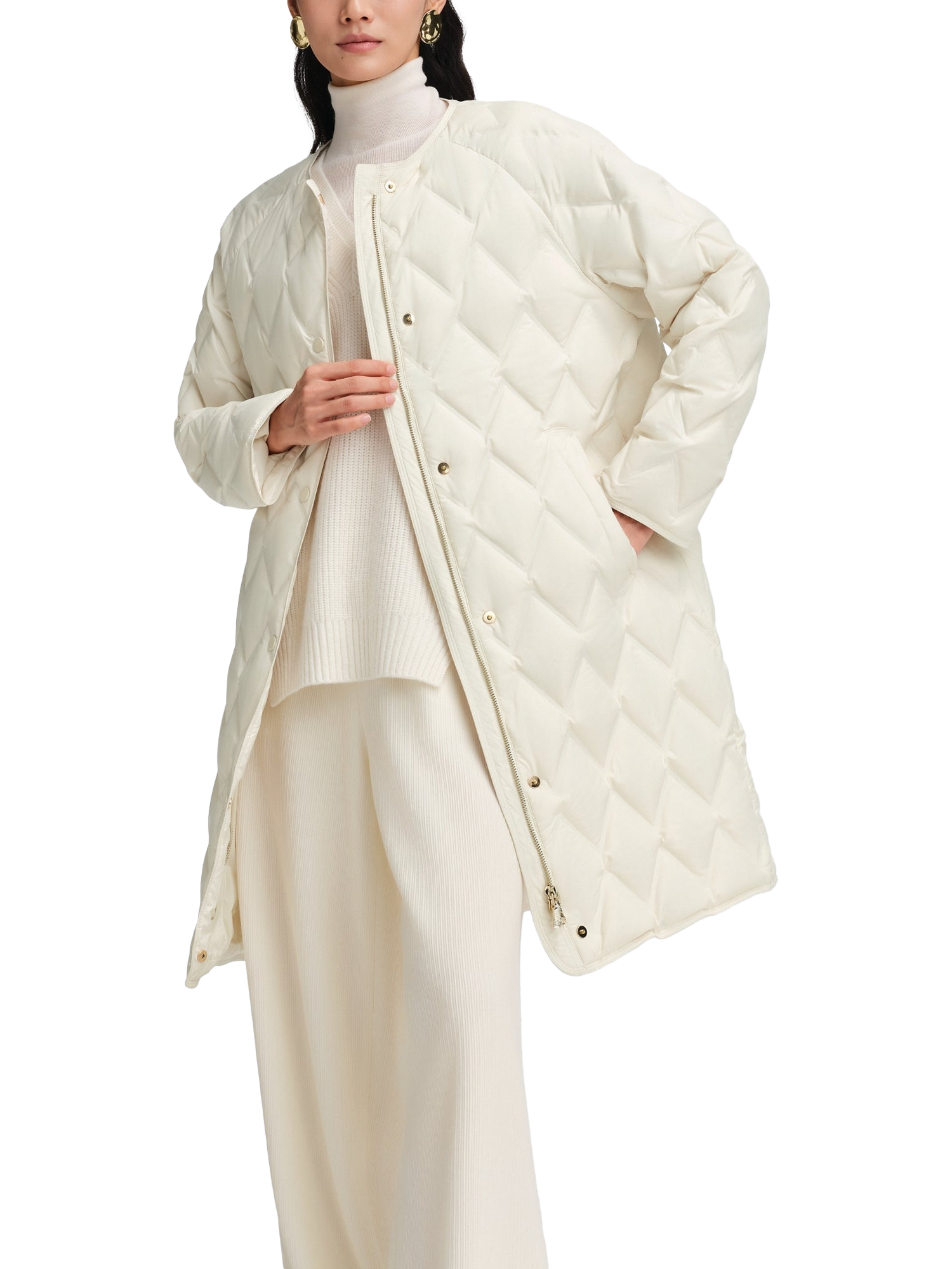 From the morning boardroom to evening drinks, this mid-length jacket delivers versatile elegance in a relaxed, modern cut. A detachable collar allows custom styling, while 700+ fill power premium goose down provides lightweight warmth with exceptional loft. Crafted from ultra-fine soft-touch fabric, it offers a dense yet featherlight feel, enhanced by 3-in-1 seamless bonding technology that ensures even insulation and prevents leakage.