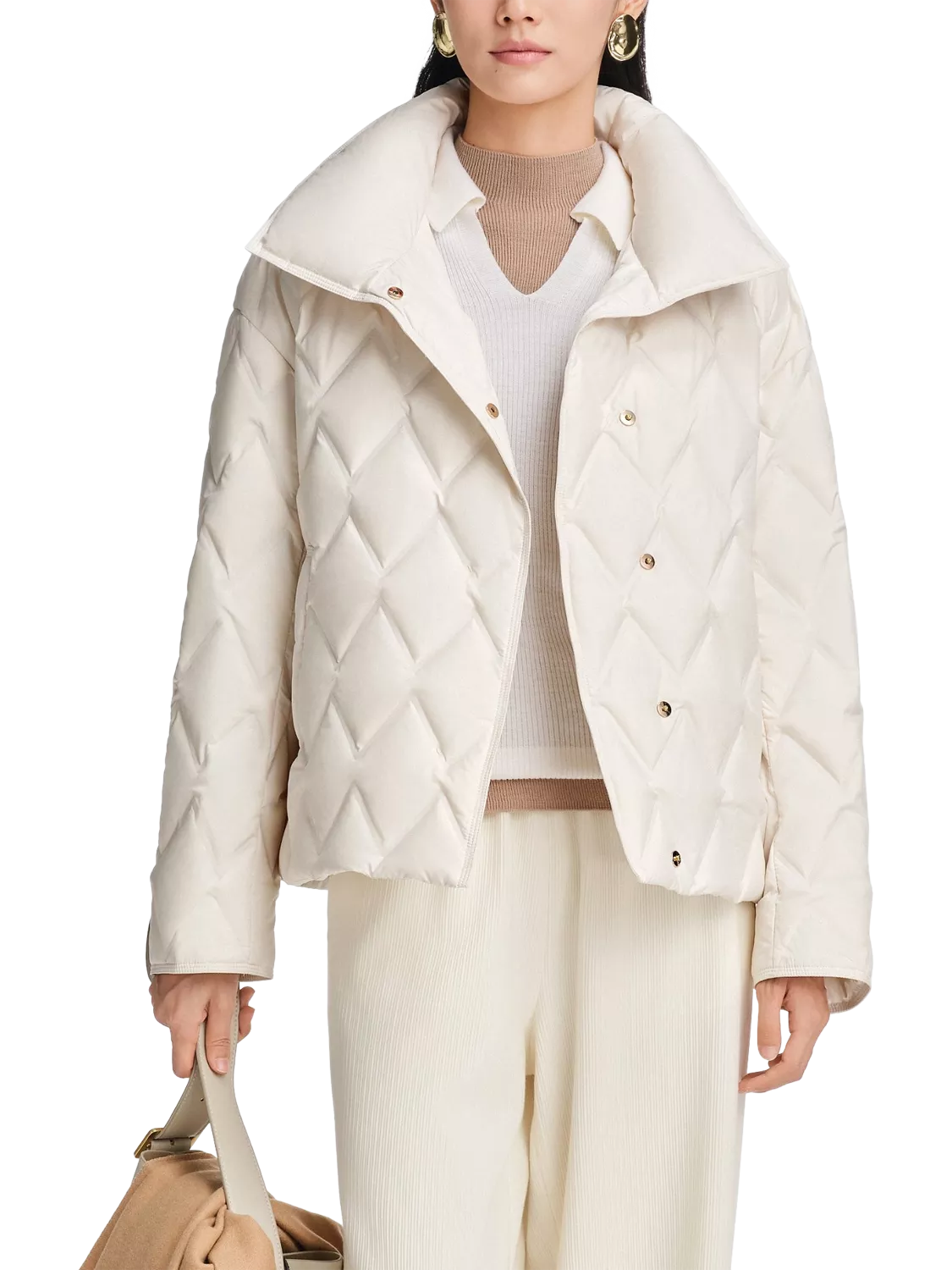 Dashing between meetings or stepping out for a coffee, this short-length jacket combines elegance and performance in a sleek silhouette. A wide lapel collar adds a sophisticated touch, while 700+ fill power premium goose down provides exceptional warmth with large, lofty clusters. Crafted from ultra-fine, lightweight yarns, the fabric feels soft yet dense, delivering comfort and insulation without bulk. Direct-fill technology ensures even distribution and prevents leakage, keeping you warm and comfortable throughout the day.
