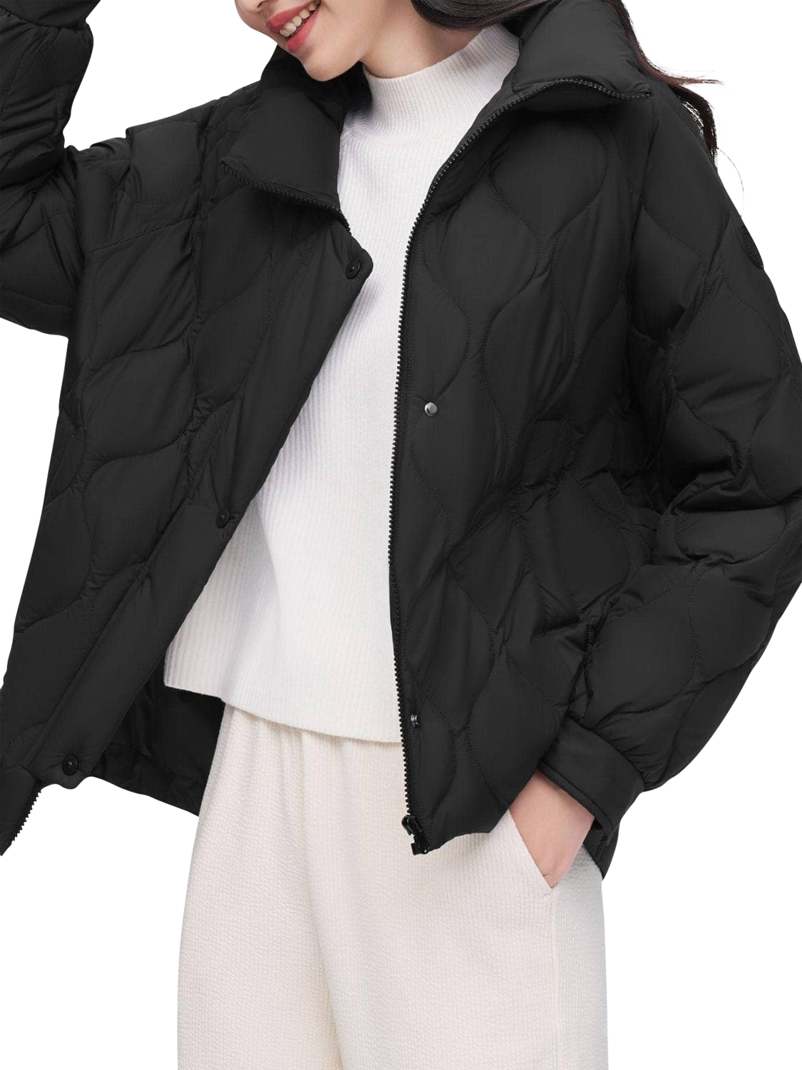 Introducing the Contrast Piping Weightless Down Jacket — where effortless style meets everyday functionality. Featuring ultra-light down insulation and sleek contrast piping, it delivers exceptional warmth with a relaxed fit, wide lapel collar, and chic quilting that flatters the silhouette.