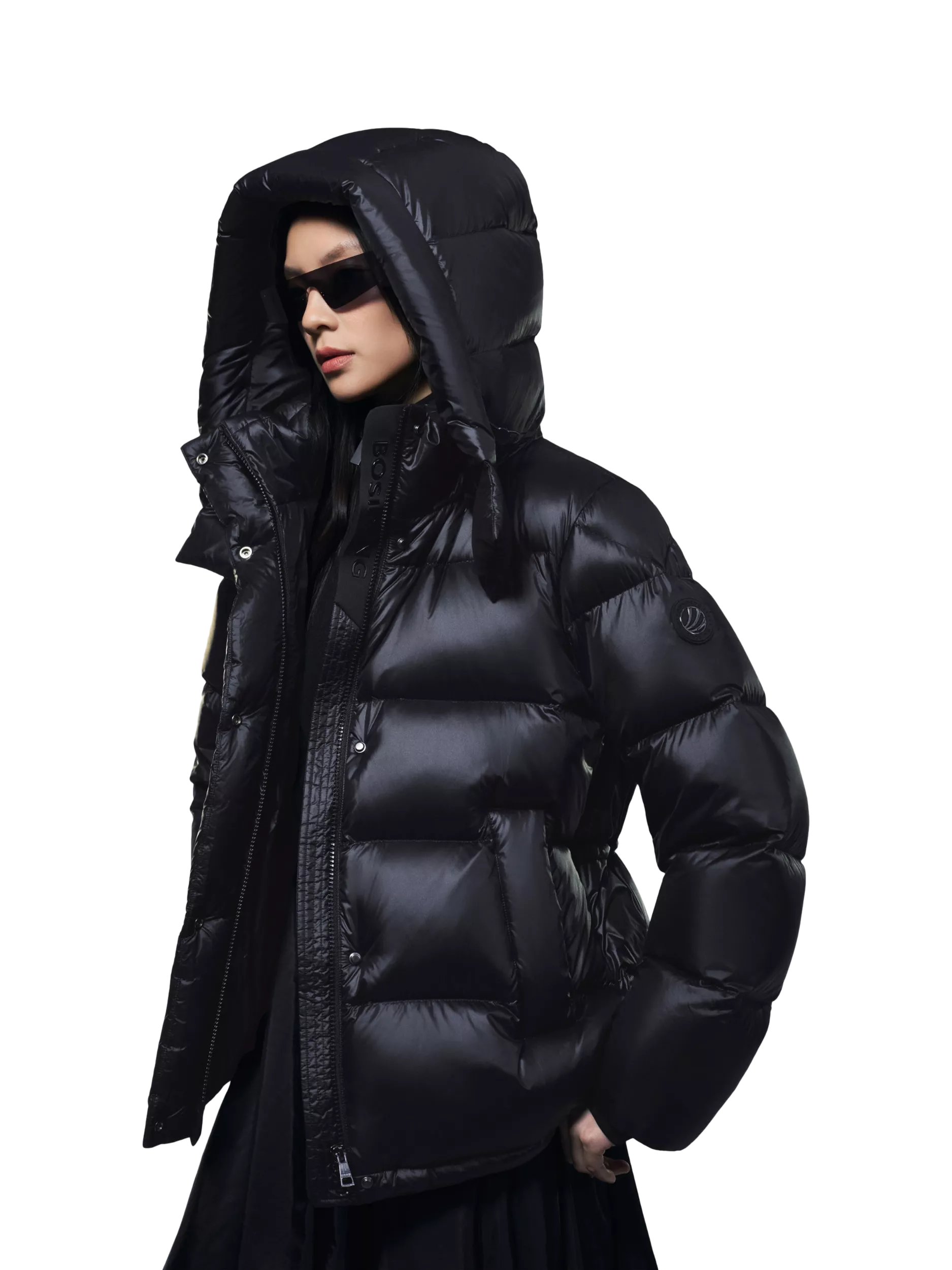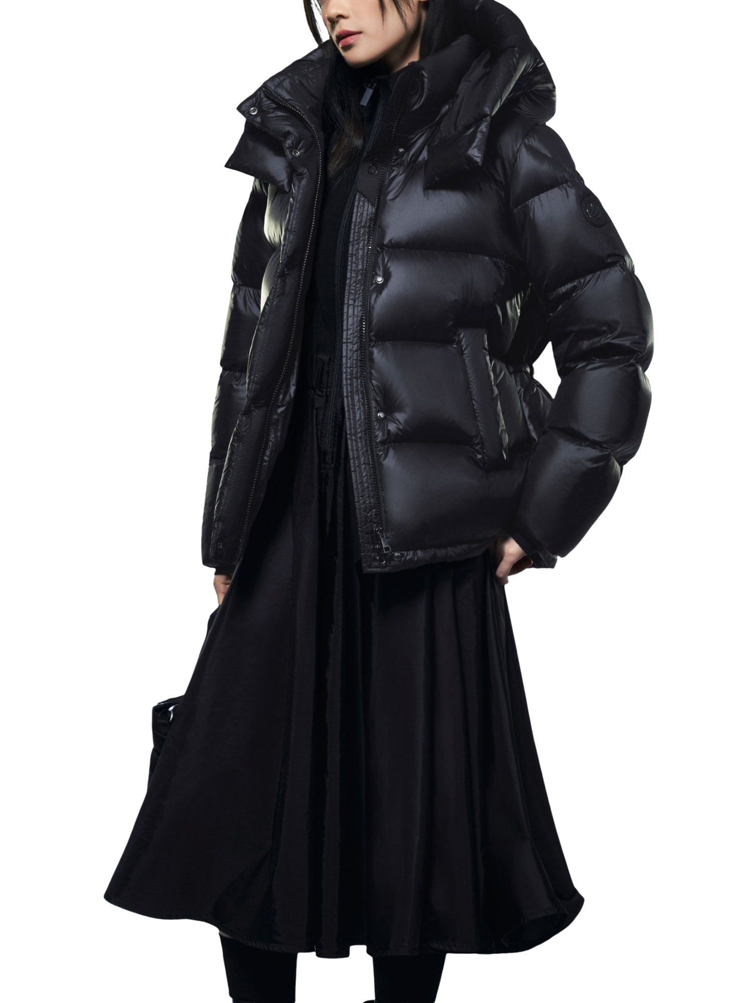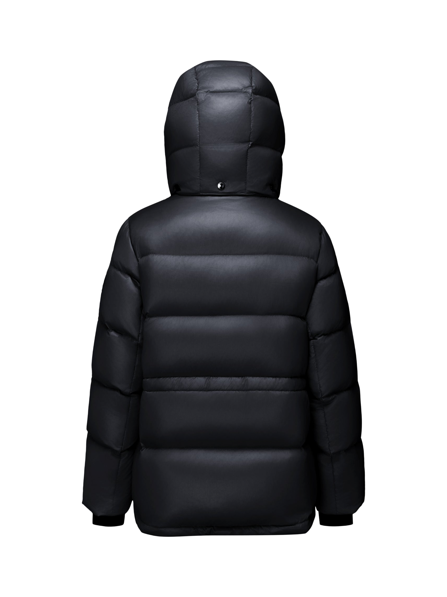 This puffer jacket combines durable high-end fabric with heat-storage technology and 700+ fill premium goose down to deliver lightweight yet powerful warmth. Its detachable hood and adjustable drawcord hem offer adaptable protection and customisable styling for all-weather comfort. Designed with a flattering, versatile silhouette, it transitions effortlessly through everyday winter wear.