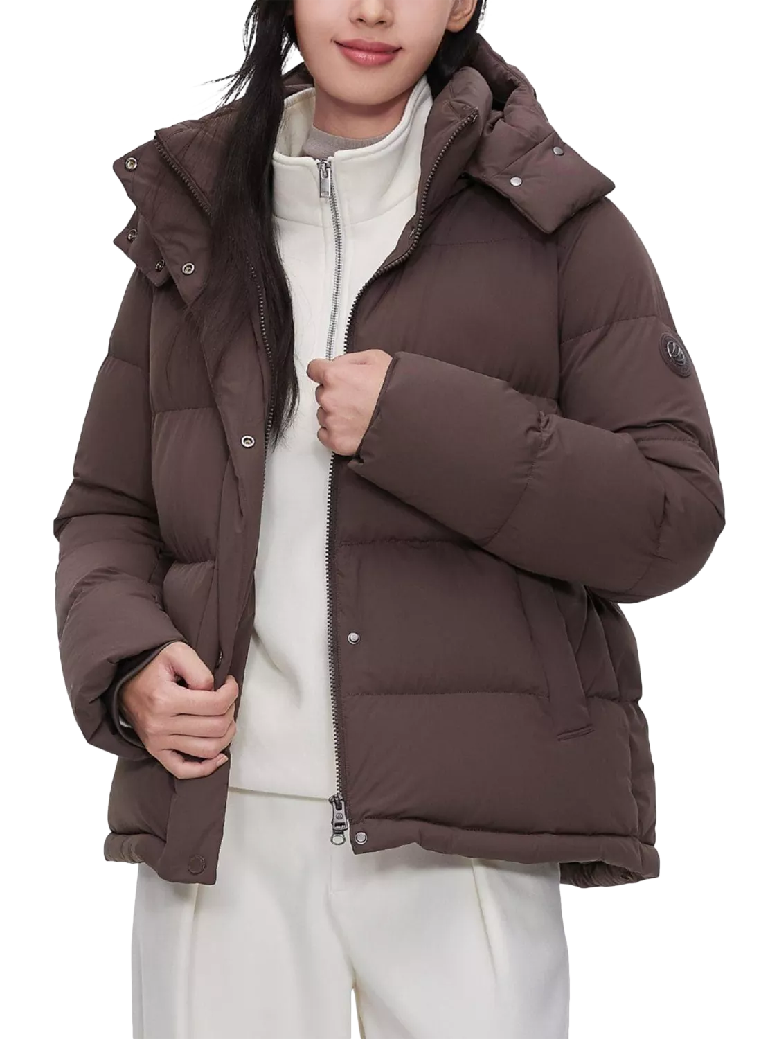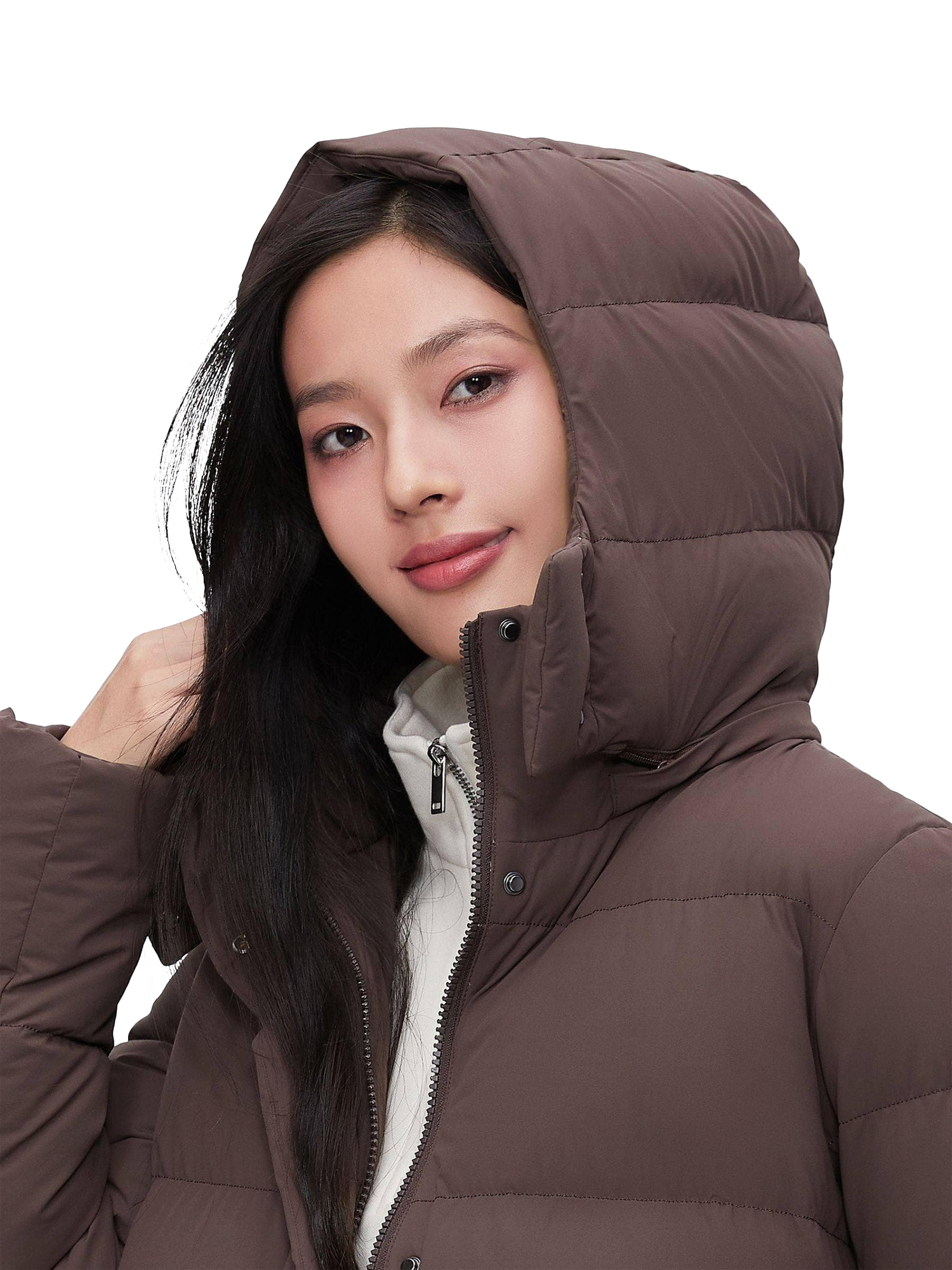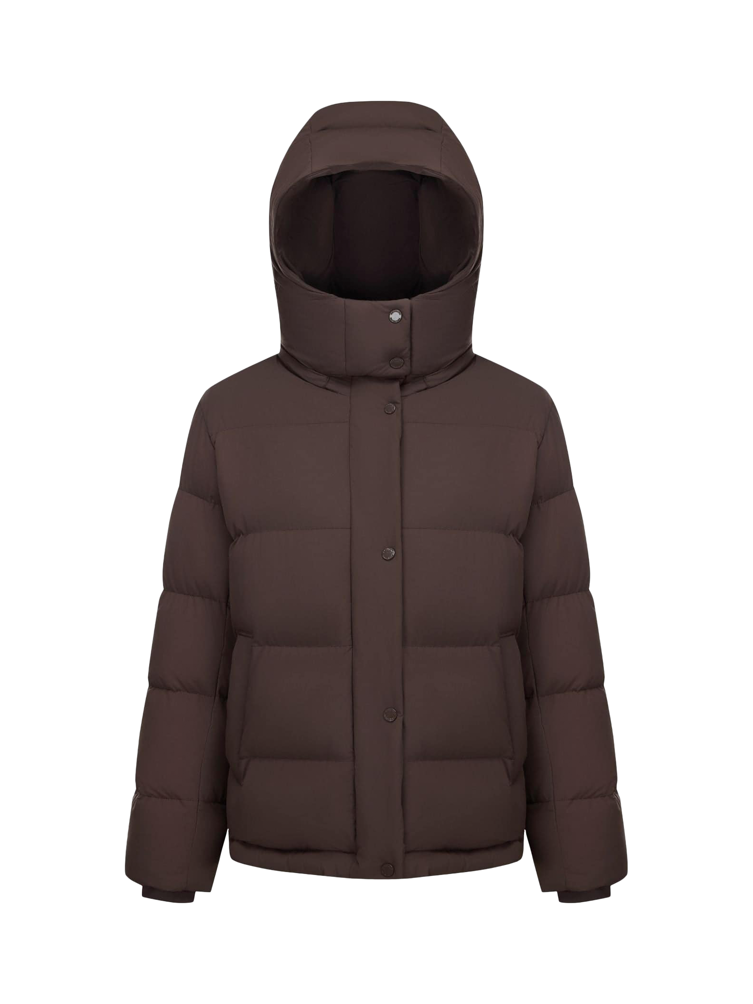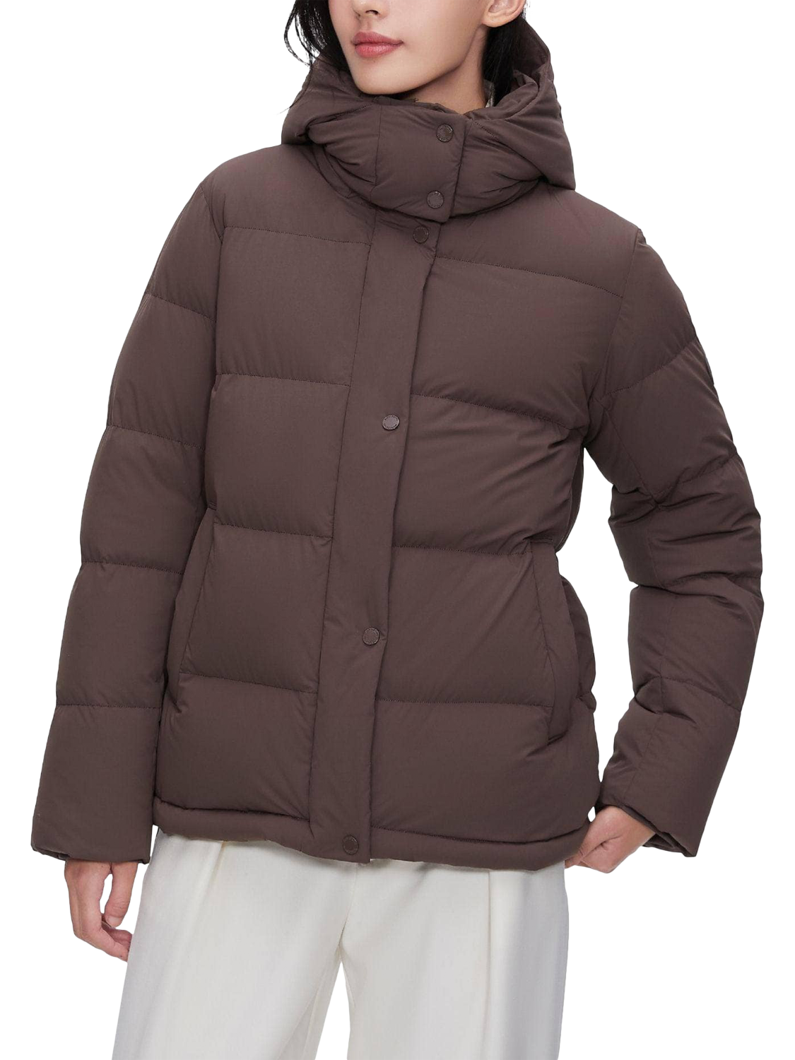 Crafted from a wrinkle-resistant, shape-retaining shell that is both abrasion-proof and water-repellent, this down jacket stays sharp and dry in any forecast. The snug, body-skimming fit locks in lightweight insulation, while a detachable hood toggles between streamlined city wear and full weather cover. Finished in a palette that bridges timeless neutrals with modern tones, it’s a single, versatile layer engineered for polished performance.