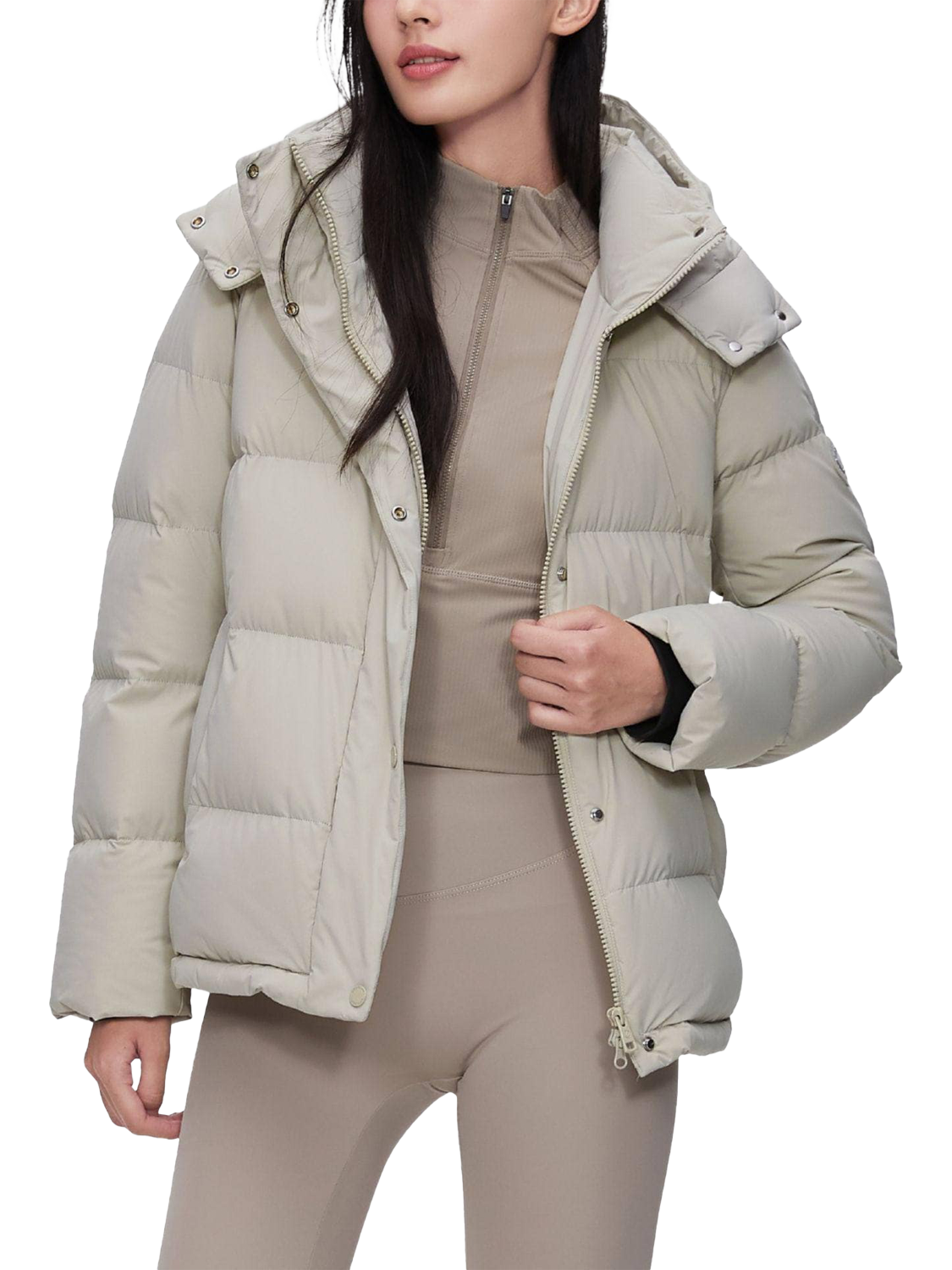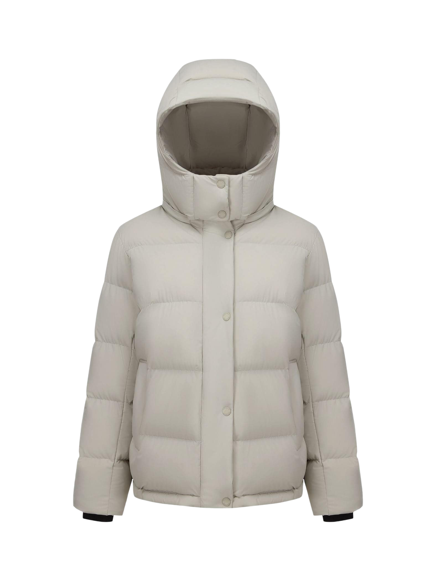 Crafted from a wrinkle-resistant, shape-retaining shell that is both abrasion-proof and water-repellent, this down jacket stays sharp and dry in any forecast. The snug, body-skimming fit locks in lightweight insulation, while a detachable hood toggles between streamlined city wear and full weather cover. Finished in a palette that bridges timeless neutrals with modern tones, it’s a single, versatile layer engineered for polished performance.