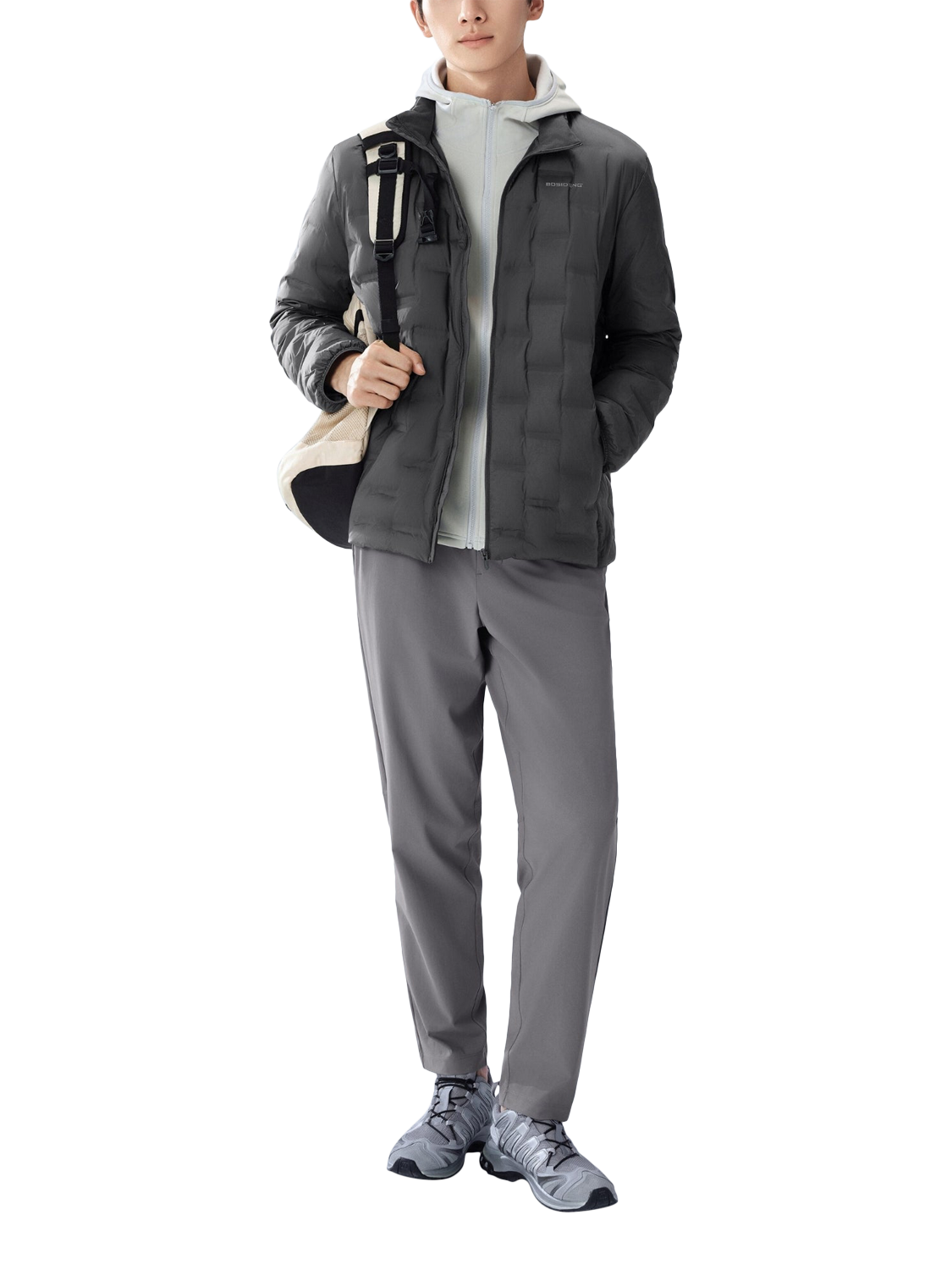 A feather-light down jacket combining effortless comfort with superior warmth. Filled with 700+ fill power premium goose down, it features large, lofty clusters for exceptional insulation, while the skin-friendly, cotton-feel tech fabric provides a soft, breathable touch. Seamless heat-press bonding ensures no down leakage, and a stand collar completes the refined, versatile design.