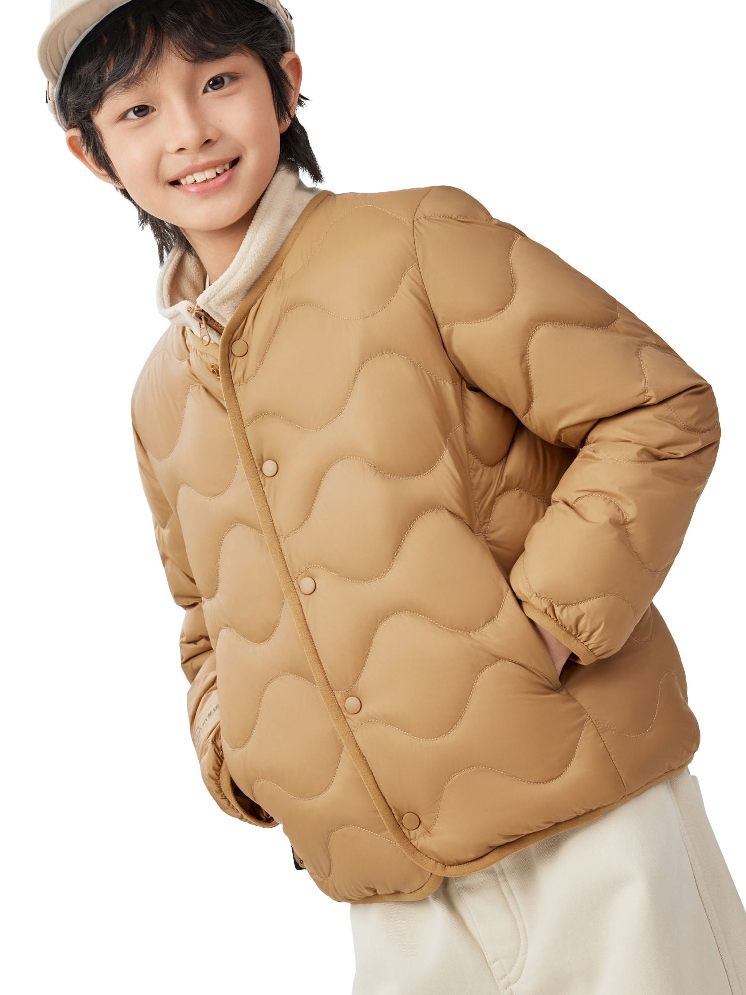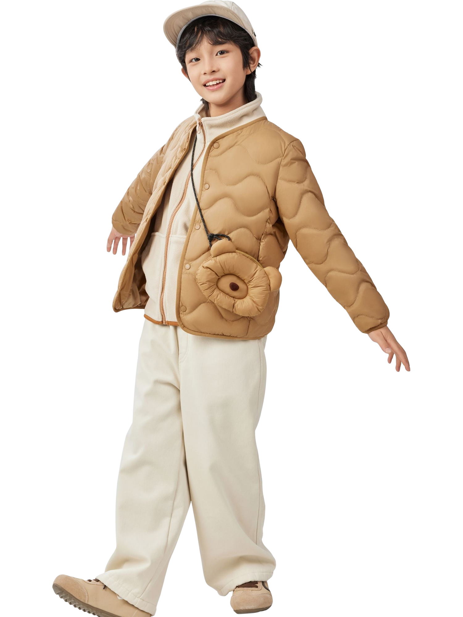 The perfect choice for puddle-jumping or chilly school mornings. This jacket delivers easy-care protection, a soft stain-resistant finish and gourd-shape quilting to lock in warmth and keep the mess out – ready for every little adventure.