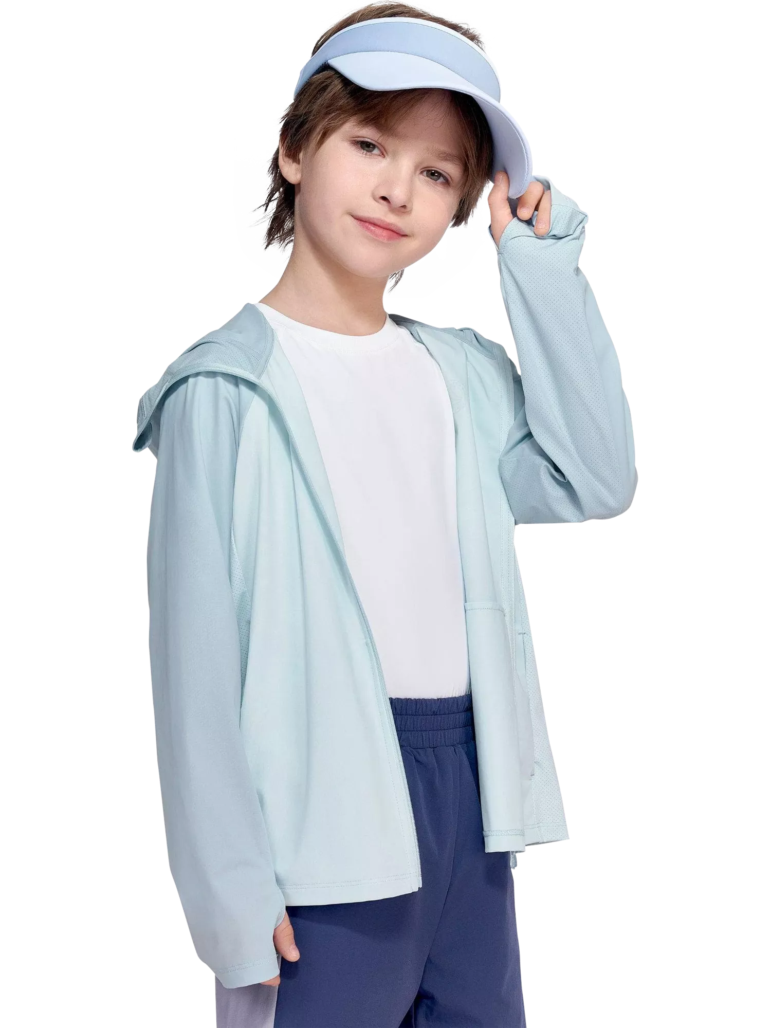 This kids’ jacket is thoughtfully designed with UPF 100+ sun protection and breathable, lightweight fabric to keep young adventurers safe and comfortable all day long. The high-tech pre-treated yarn blocks harmful UV rays, helping prevent skin damage and premature ageing. Micro-perforated fabric ensures excellent ventilation, even during active play. A hidden hair opening adds convenience for any hairstyle, while the printed sun-protection index highlights its advanced functionality at a glance.