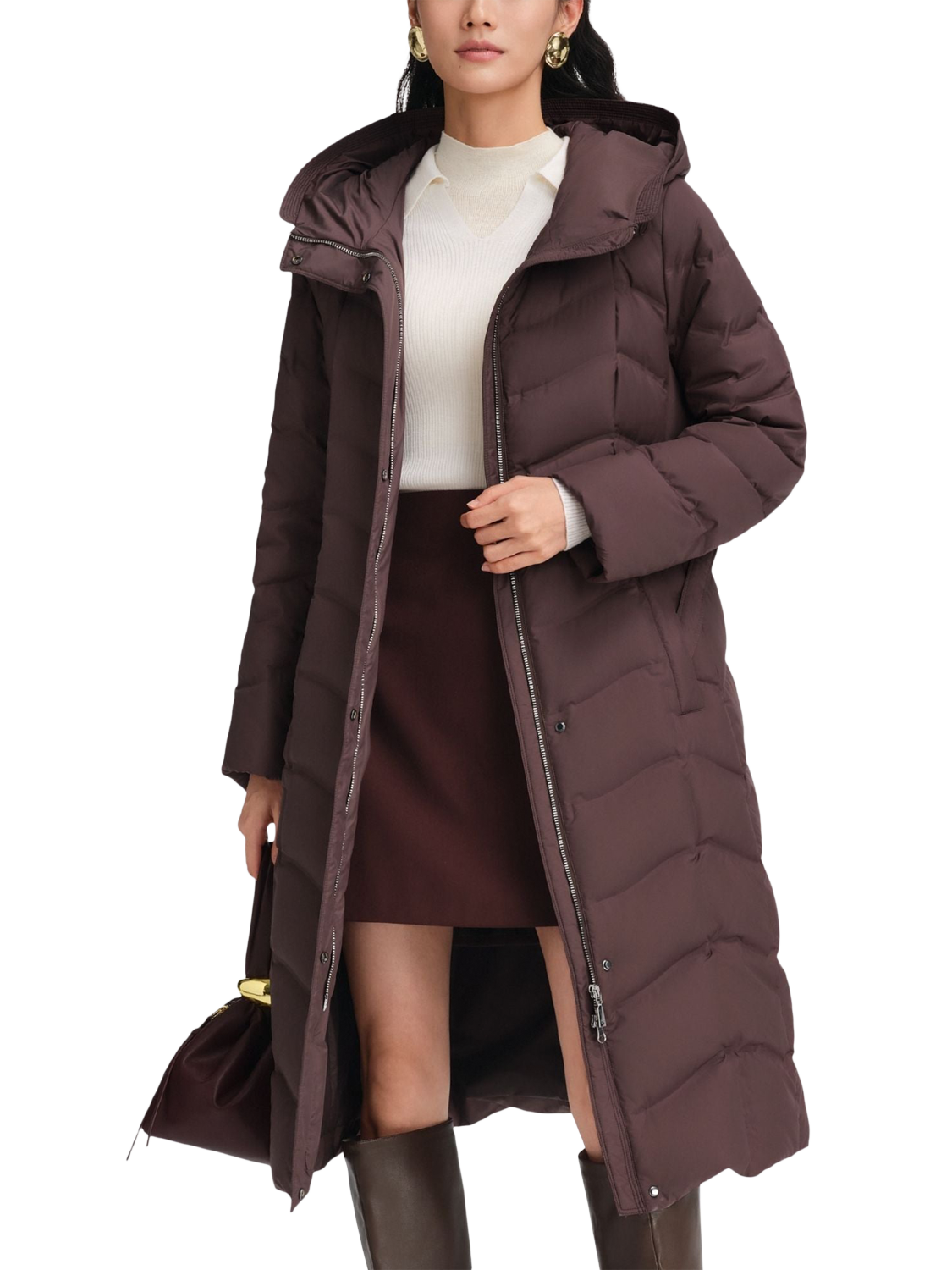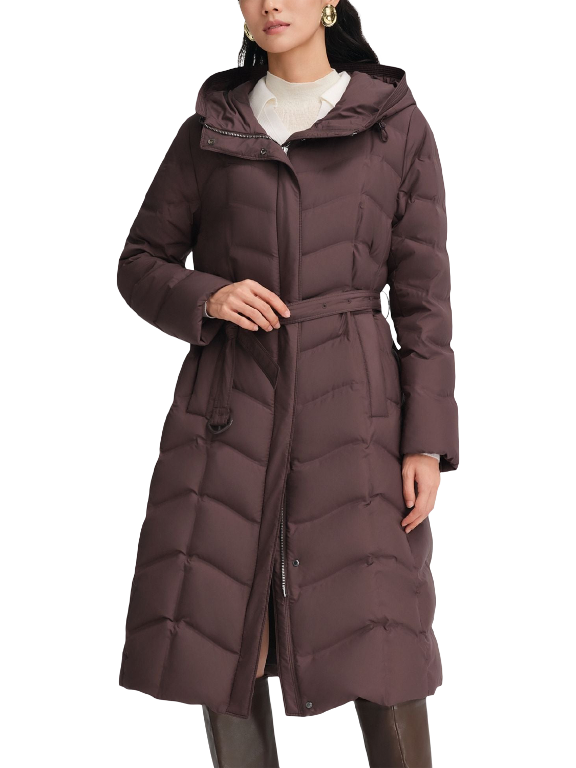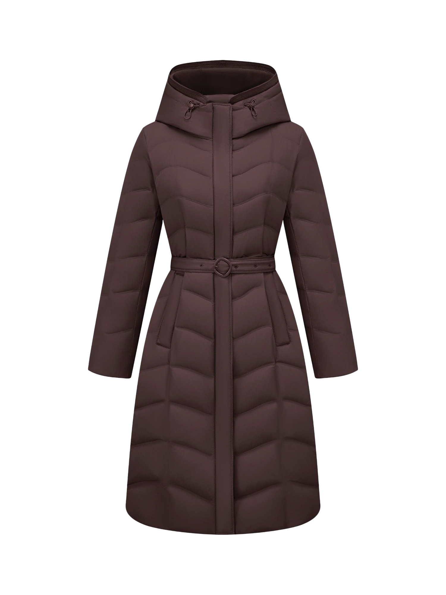 A full-length jacket designed for frosty commutes and city days alike. Filled with 700+ fill power pure goose down, it offers exceptional warmth in a lightweight, soft-touch fabric. The adjustable belted waist flatters every silhouette, while seamless direct-fill insulation prevents down leakage for lasting comfort and style.