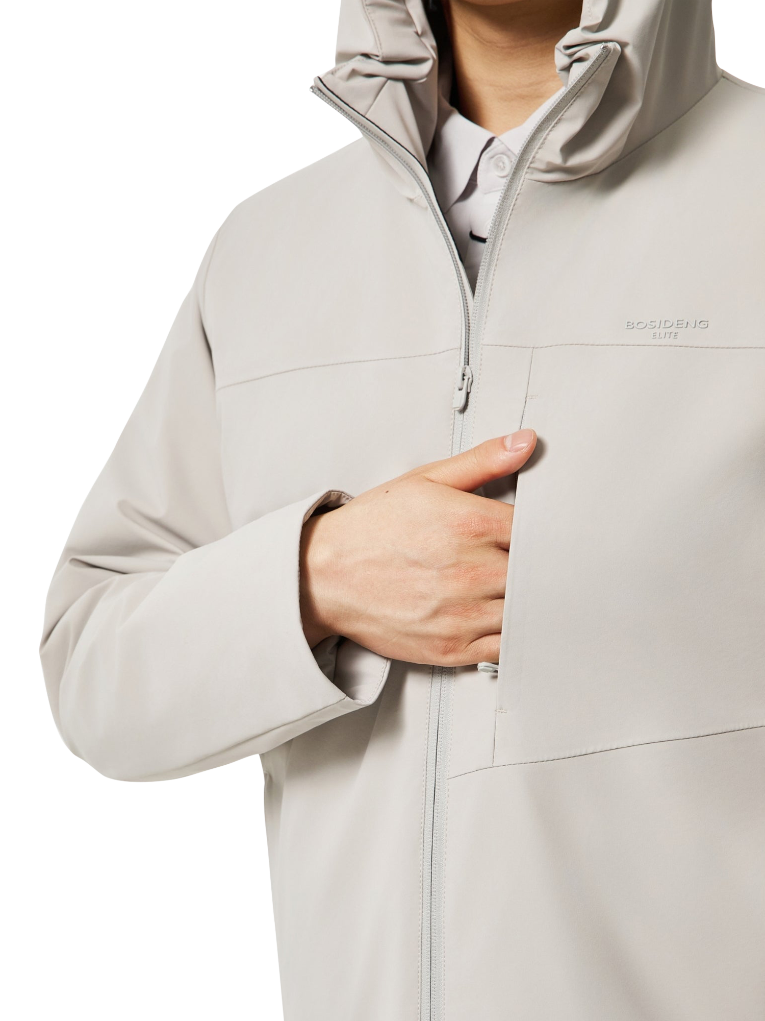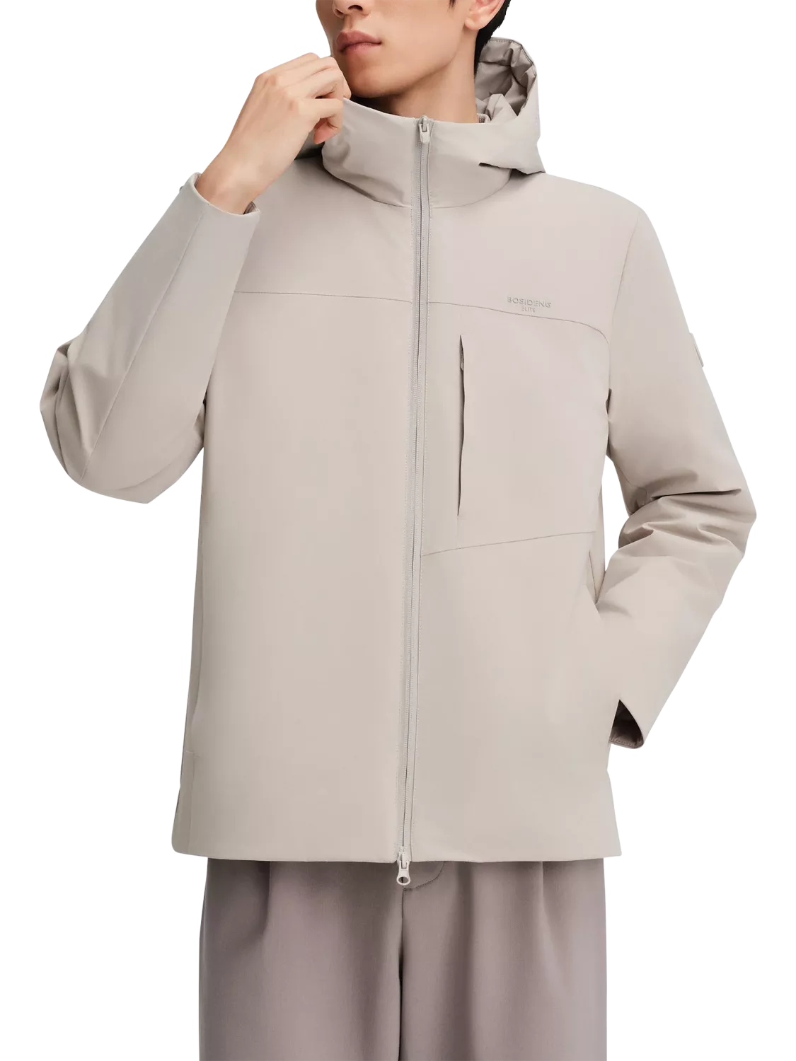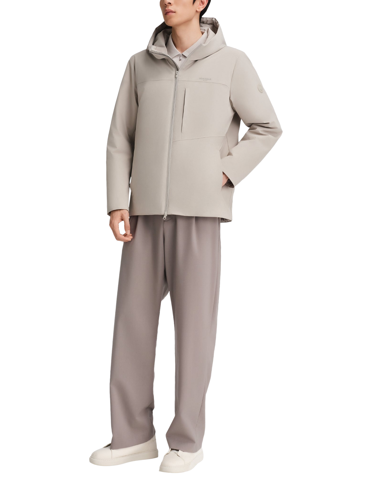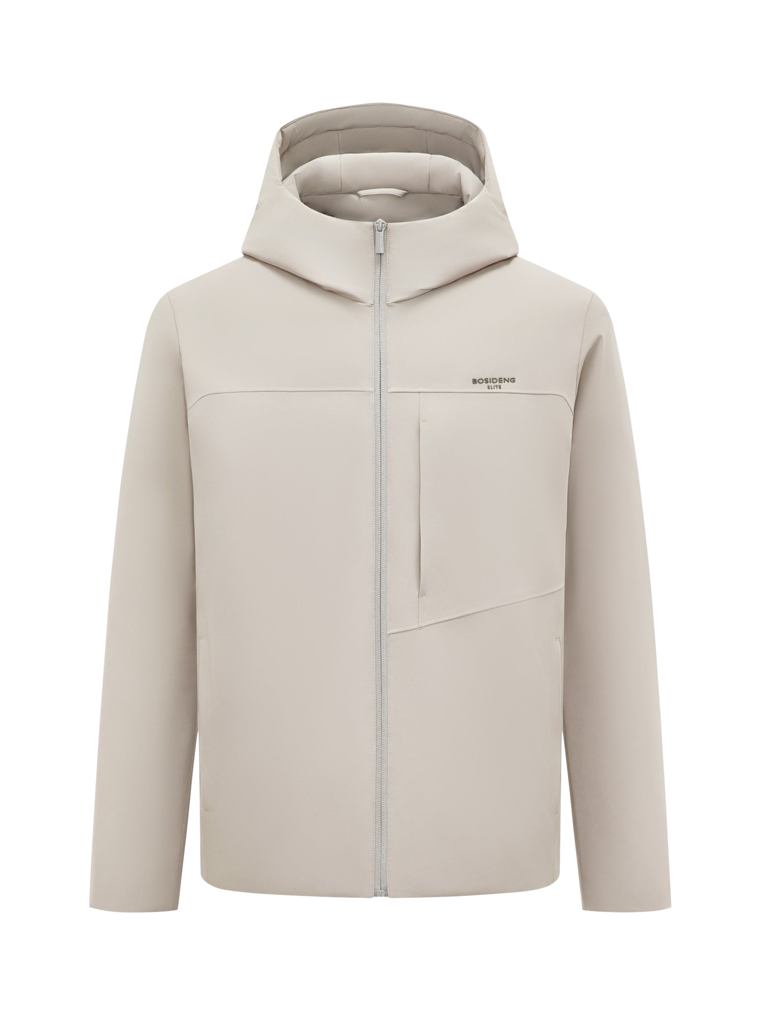 This short jacket blends refined business style with lasting warmth, thanks to premium goose down and German-engineered insulation. The structured, water-repellent fabric offers a subtle sheen and a high-quality feel. Designed with a clean hooded silhouette, it’s ideal for on-the-go comfort from morning to evening.