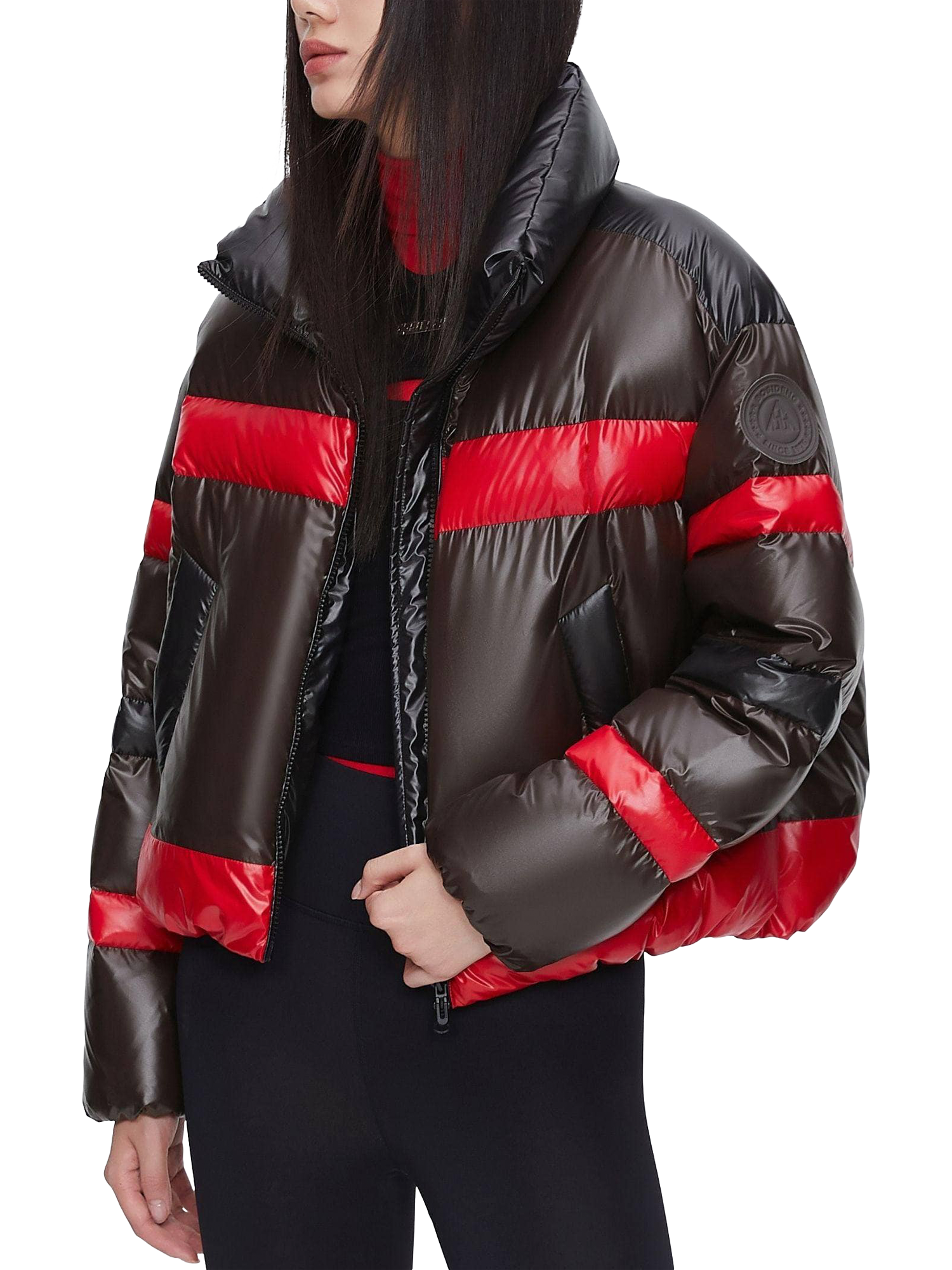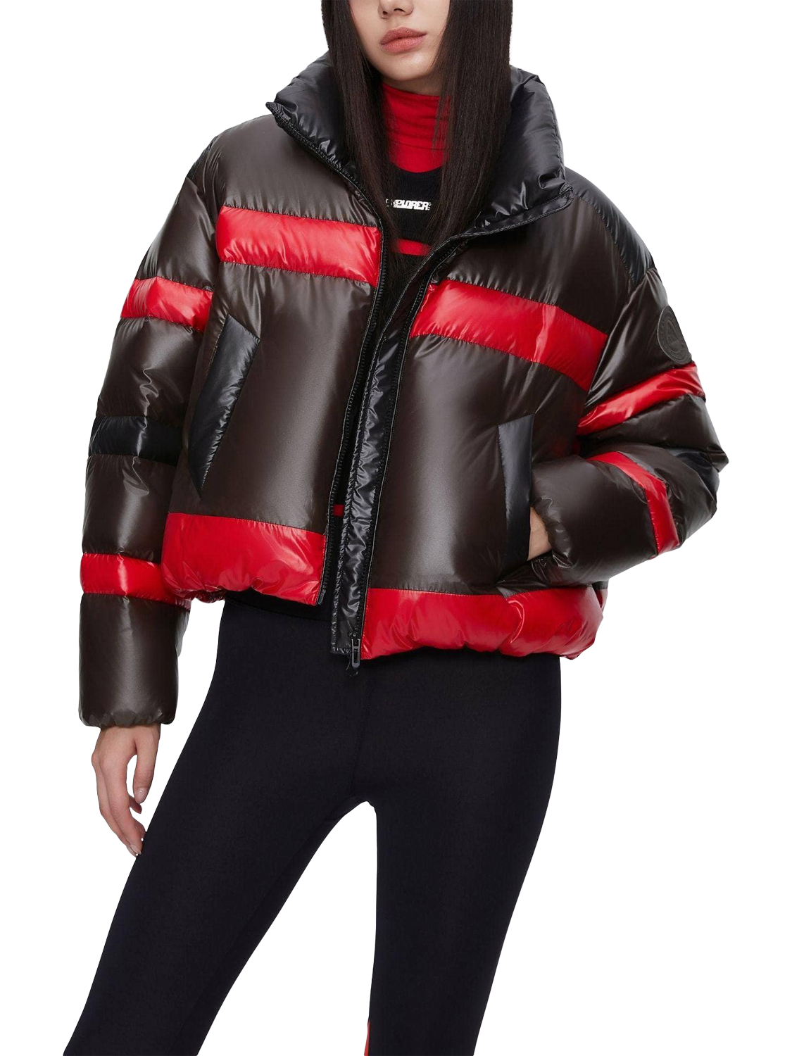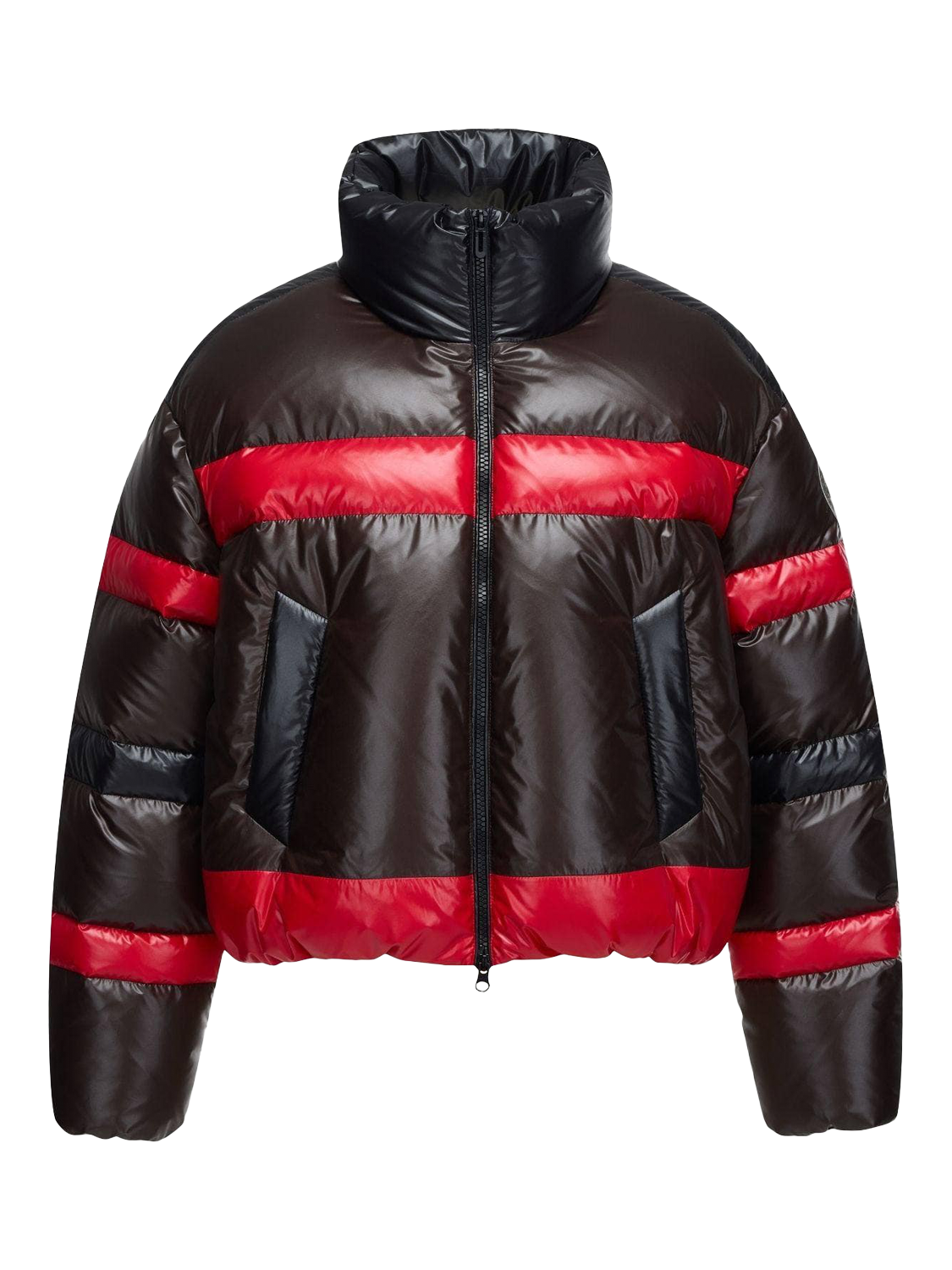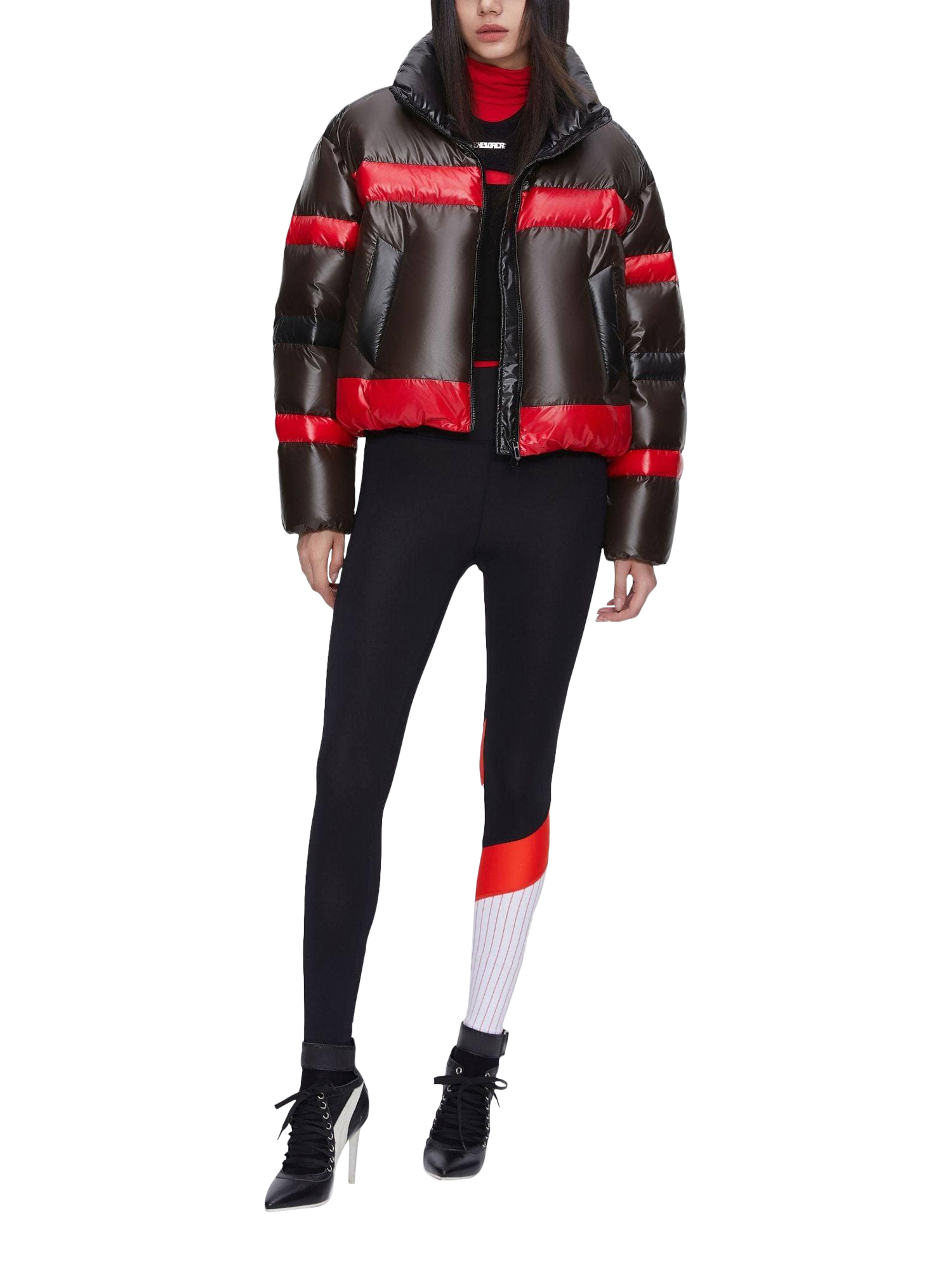 An exclusive collaboration with Italy’s renowned MSGM, this must-have piece features colour blocking for a sharp look. Advanced weaving technology ensures vibrant colours and water-repellent performance, while glossy fabrics with Japanese calendering add a luxurious sheen.