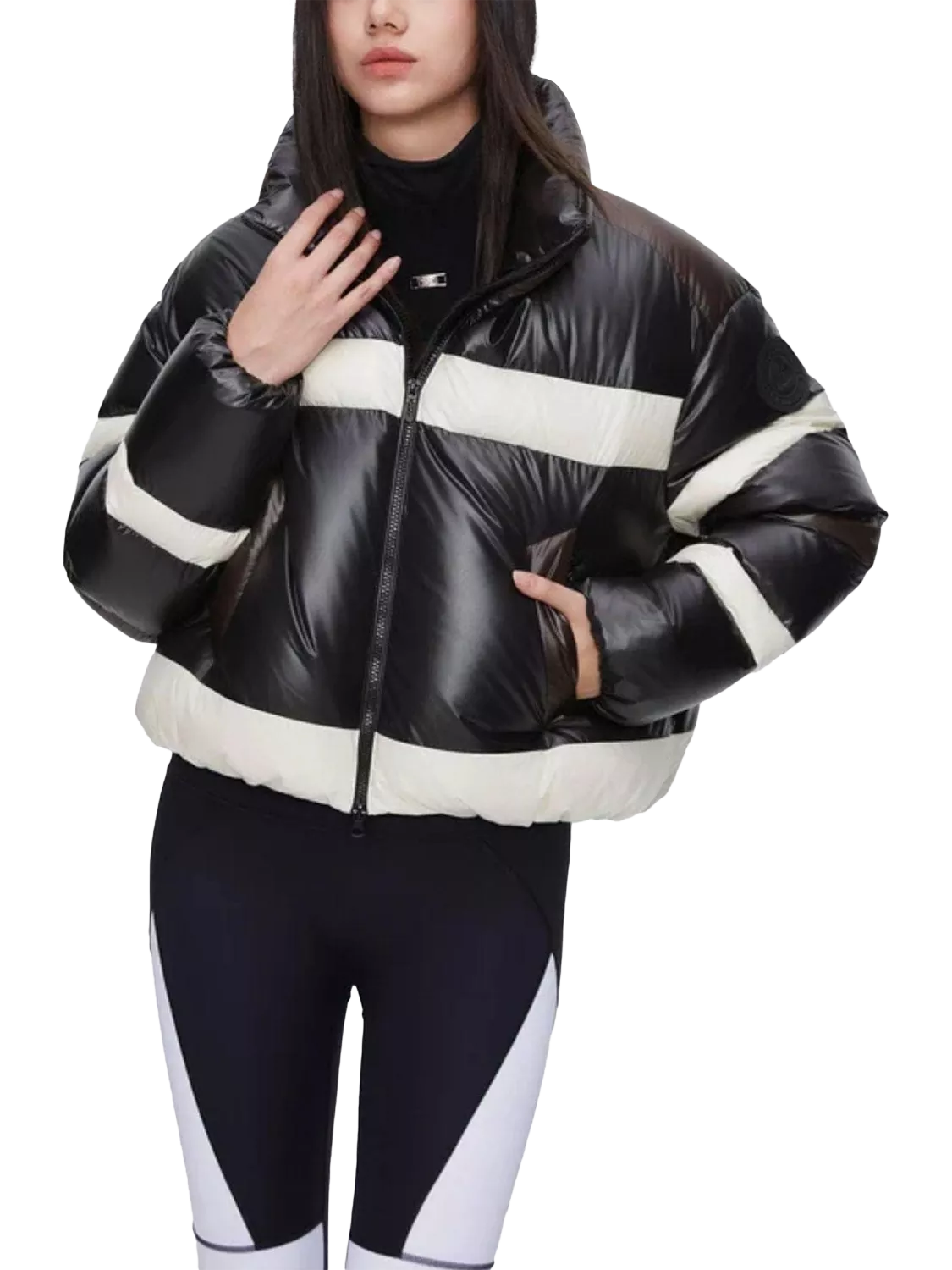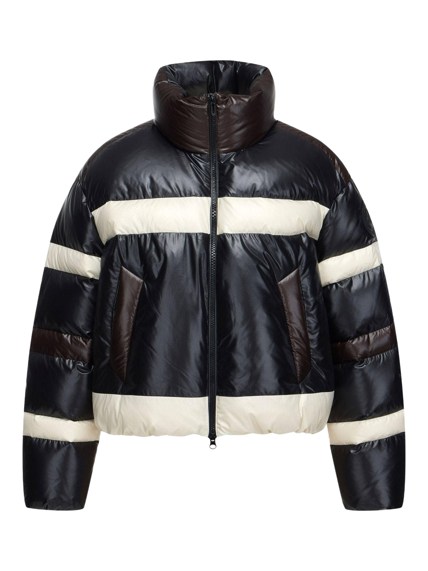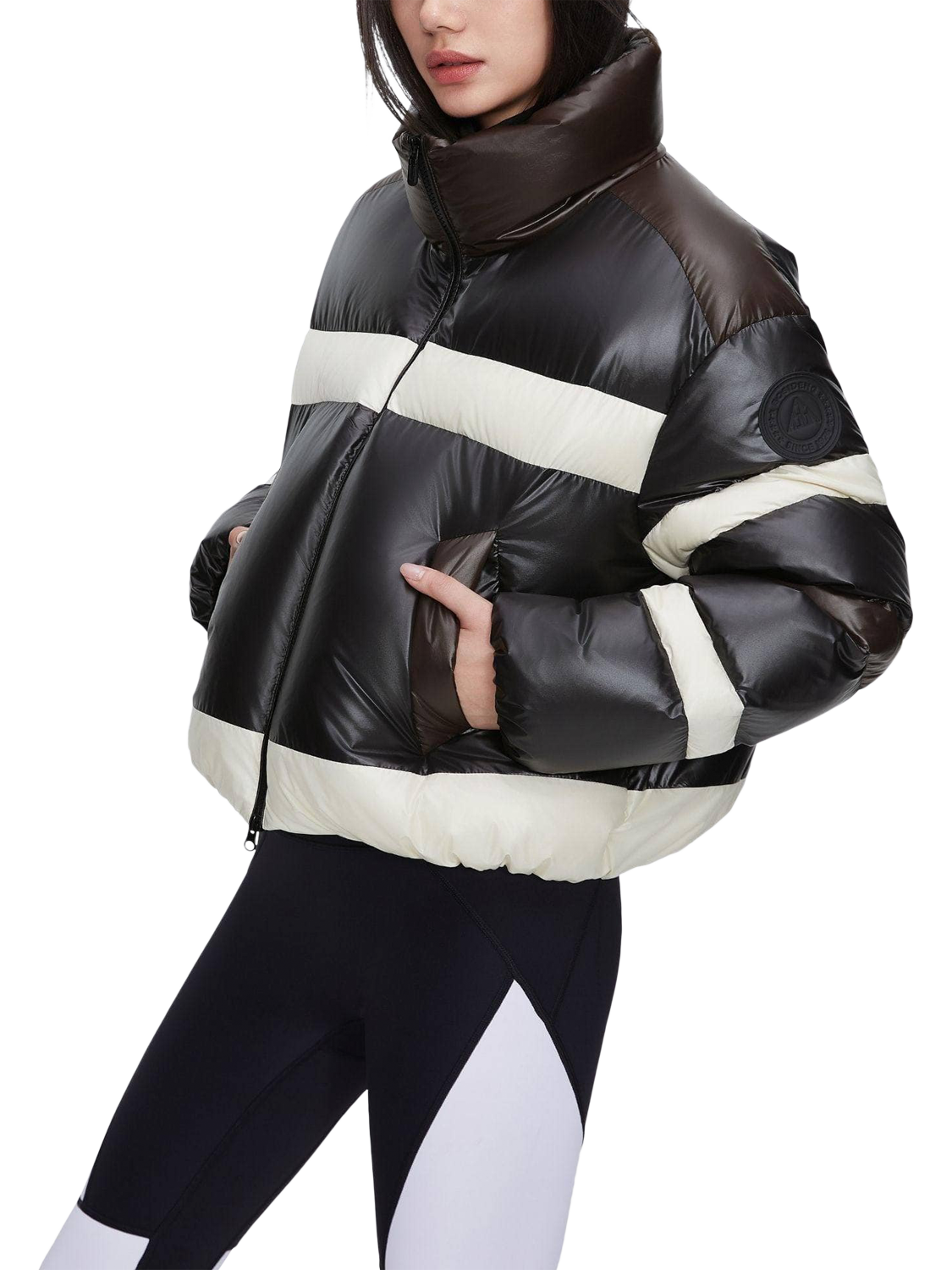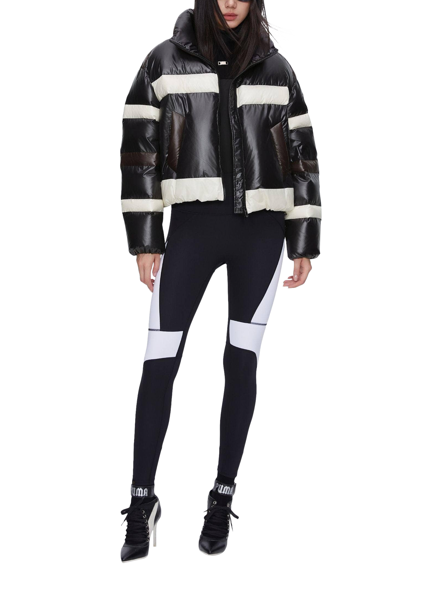 An exclusive collaboration with Italy’s renowned MSGM, this must-have piece features colour blocking for a sharp look. Advanced weaving technology ensures vibrant colours and water-repellent performance, while glossy fabrics with Japanese calendering add a luxurious sheen.