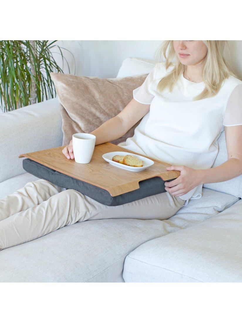 Bosign's wooden top lap tray with its soft cushion base is the perfect tray to use for breakfast in bed, dinner on the sofa, while surfing the internet from your favourite armchair or for working from home. This stylish and contemporary tray creates a stable surface when used on your lap, whether you are in bed, in a chair or slouching comfortably on the settee.