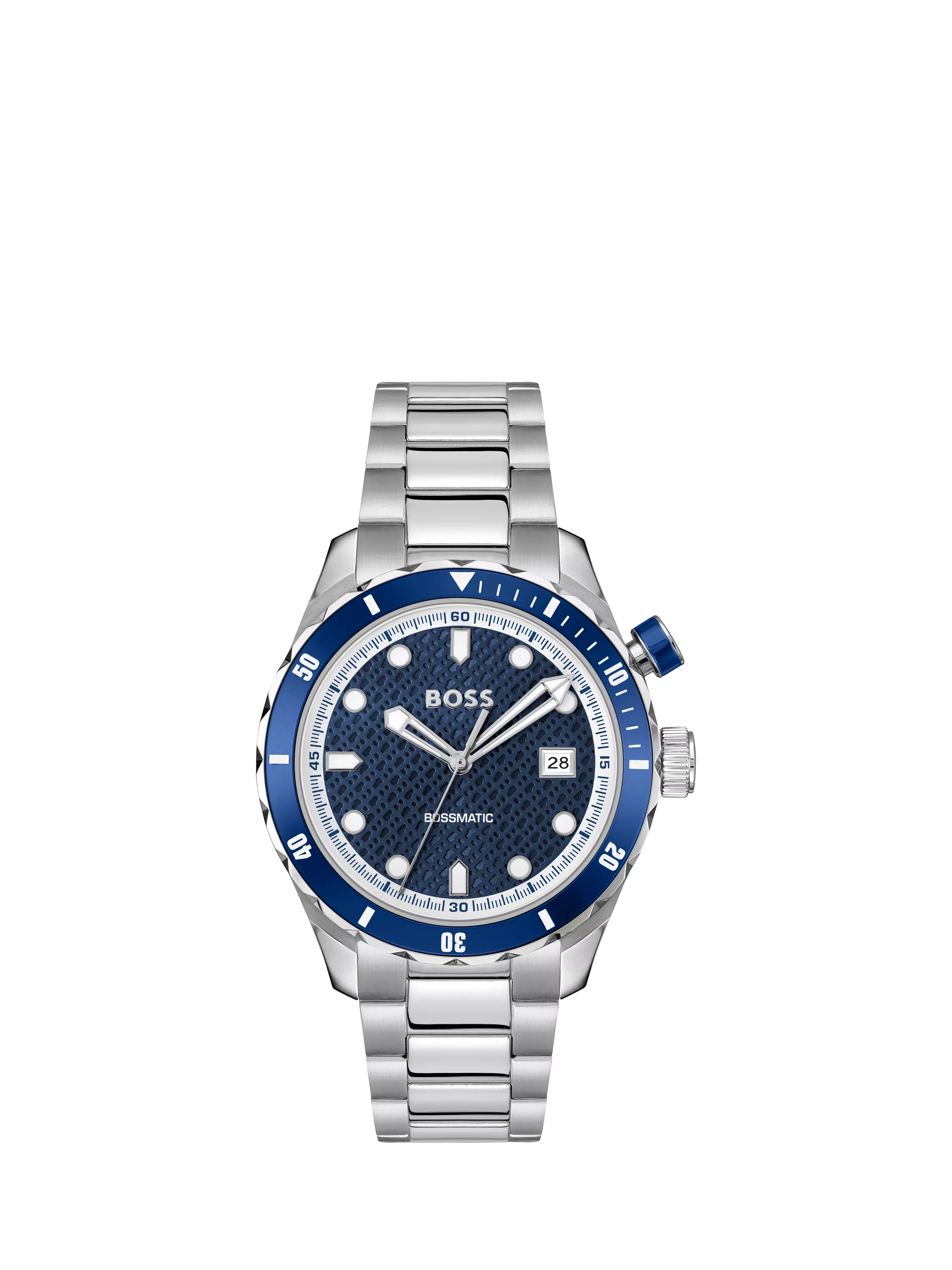 Featuring a 42mm stainless steel case with aluminium inlay, blue dial with BOSS monogram texture with polished indexes with lumi fill.