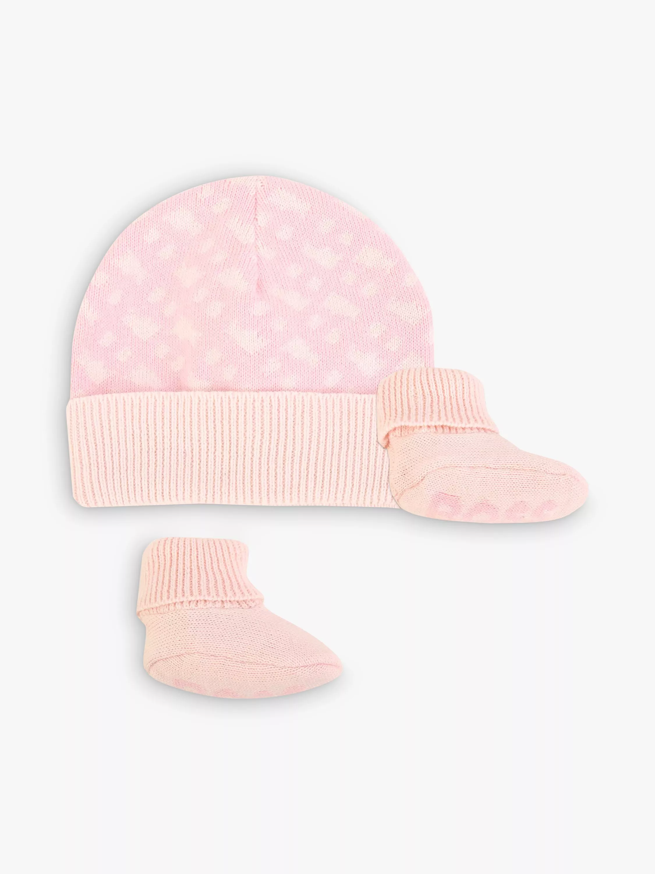 A cute beanie hat and bootie set featuring iconic BOSS iconography.