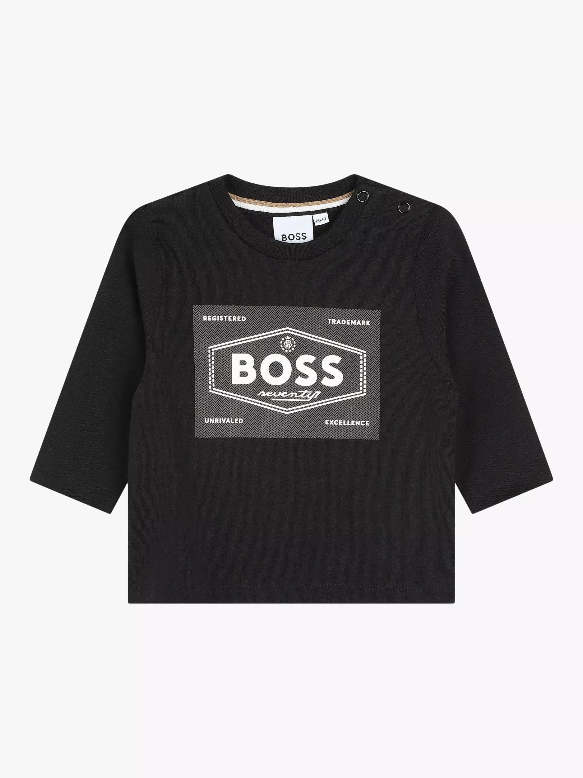 Keep up with your fast growing baby with this long-sleeved t-shirt by HUGO BOSS. Made from pure cotton for a super-soft finish, it's designed with a logo detailing and has hidden poppers at the neck for lightning-quick changes.