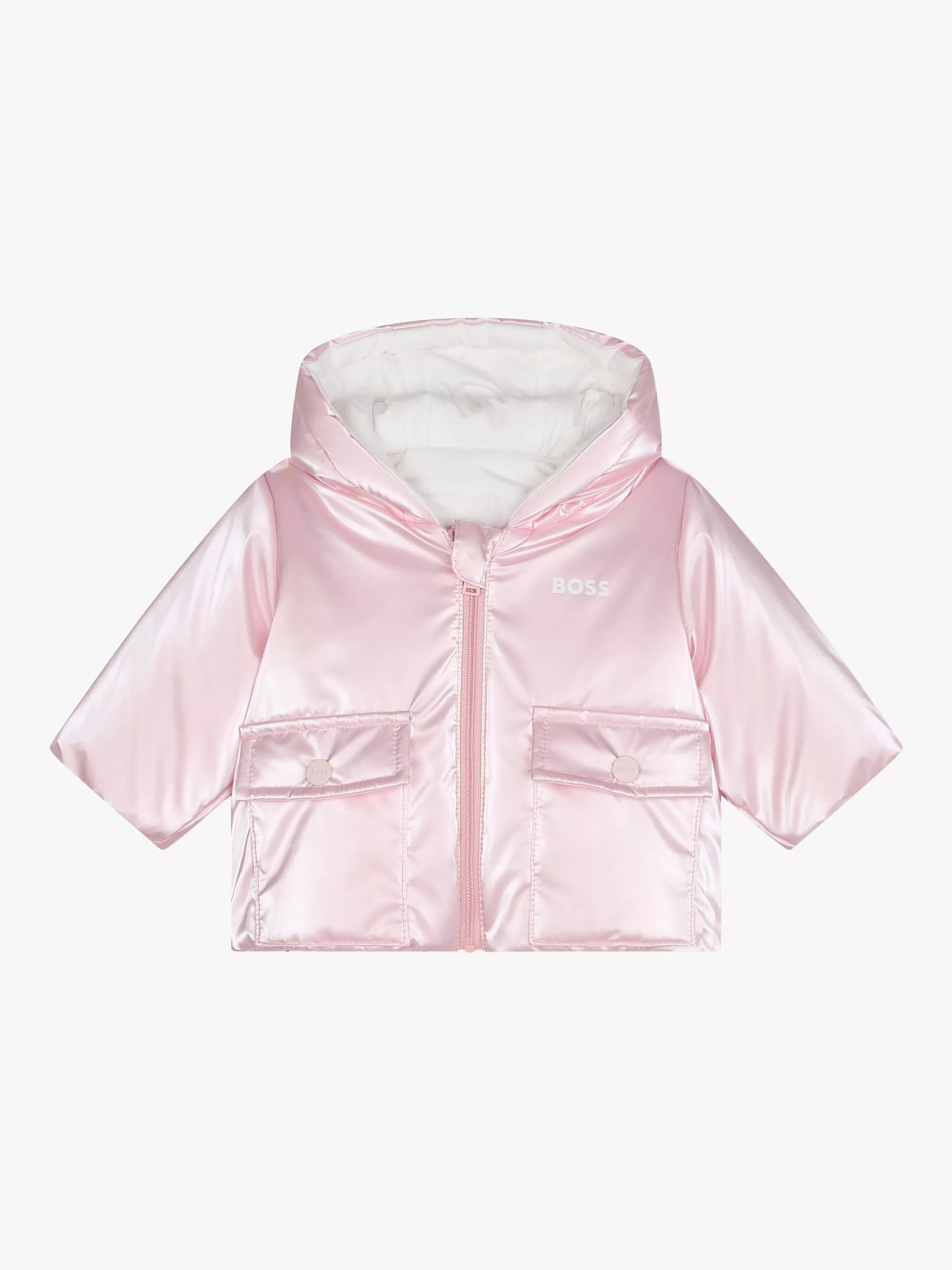 HUGO BOSSBOSS Baby Reversible Hooded Puffer Jacket, Pink Pale
