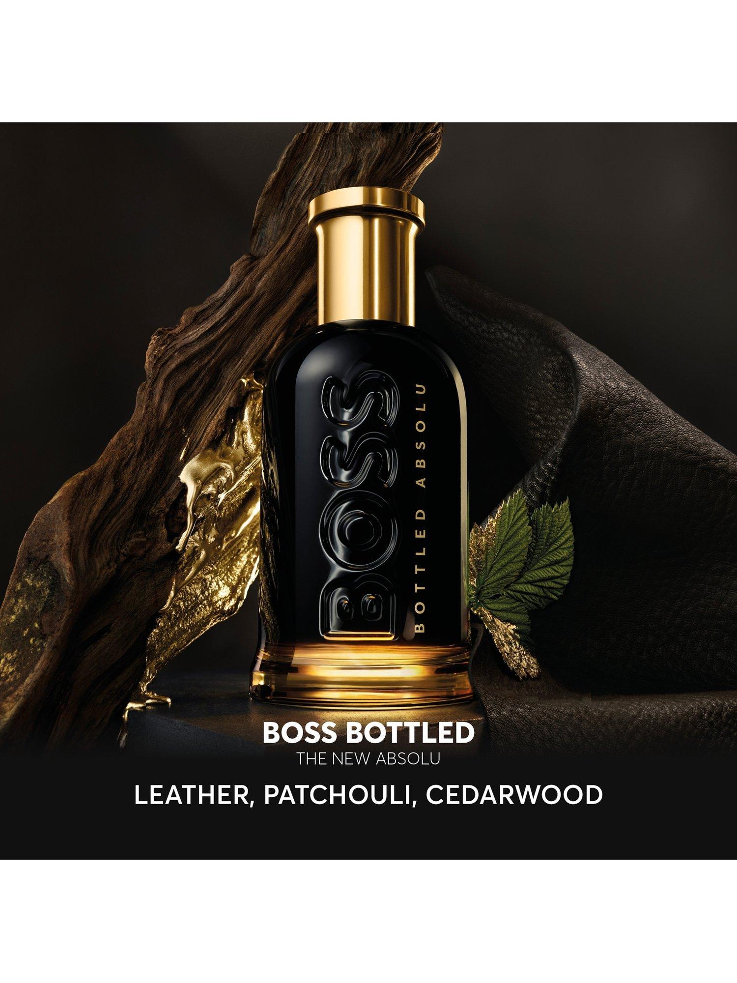 Crafted by Annick Menardo in collaboration with Suzy Le Helley, BOSS Bottled Absolu opens smoothly with a textured Leather accord – featuring a roasted facet – harmonised with invigorating Incense essence. At the heart of this BOSS parfum for men, enveloping Patchouli essence and Myrrh absolute elevate the vigour and splendour of this sophisticated scent. Warm Cedarwood and fruity Davana essences at the base leave a lasting, precious trail.