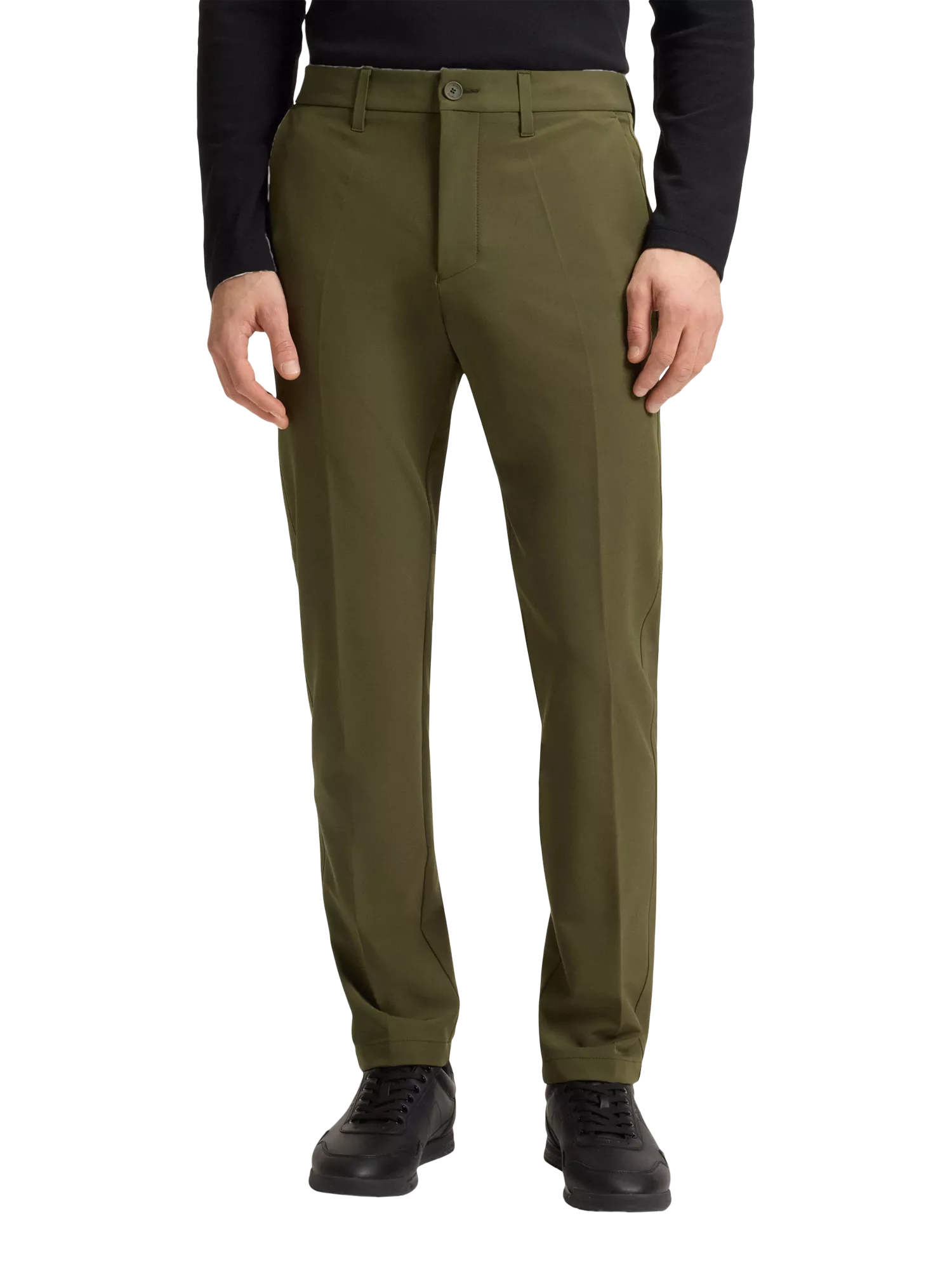 Designed for practicality, they boast quick-dry, water-repellent, and easy-ironing properties, making them a breeze to manage. The body-conscious fit with an athleisure inseam provides exceptional comfort, while the waistband offers both belt loops and invisible interior drawstrings for a perfect fit. Practicality is woven into every detail, with a zipped fly, a cardholder solution, and a coin catcher function integrated into the front pocket for wallet-free commuting. A subtle 3D rubberised BOSS logo print on the back pocket adds a signature touch.