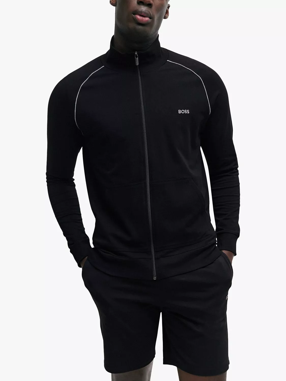 Providing unrivalled comfort while you are out and about, this cotton blend tracksuit top by HUGO BOSS is framed with a zip neckline and long sleeves.