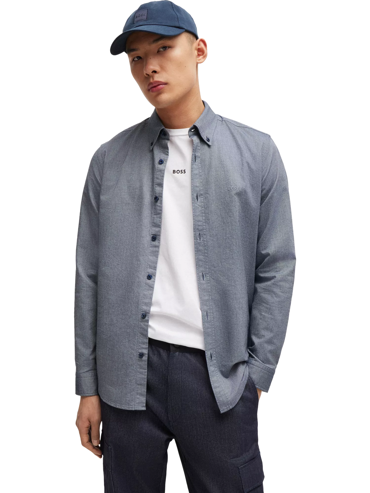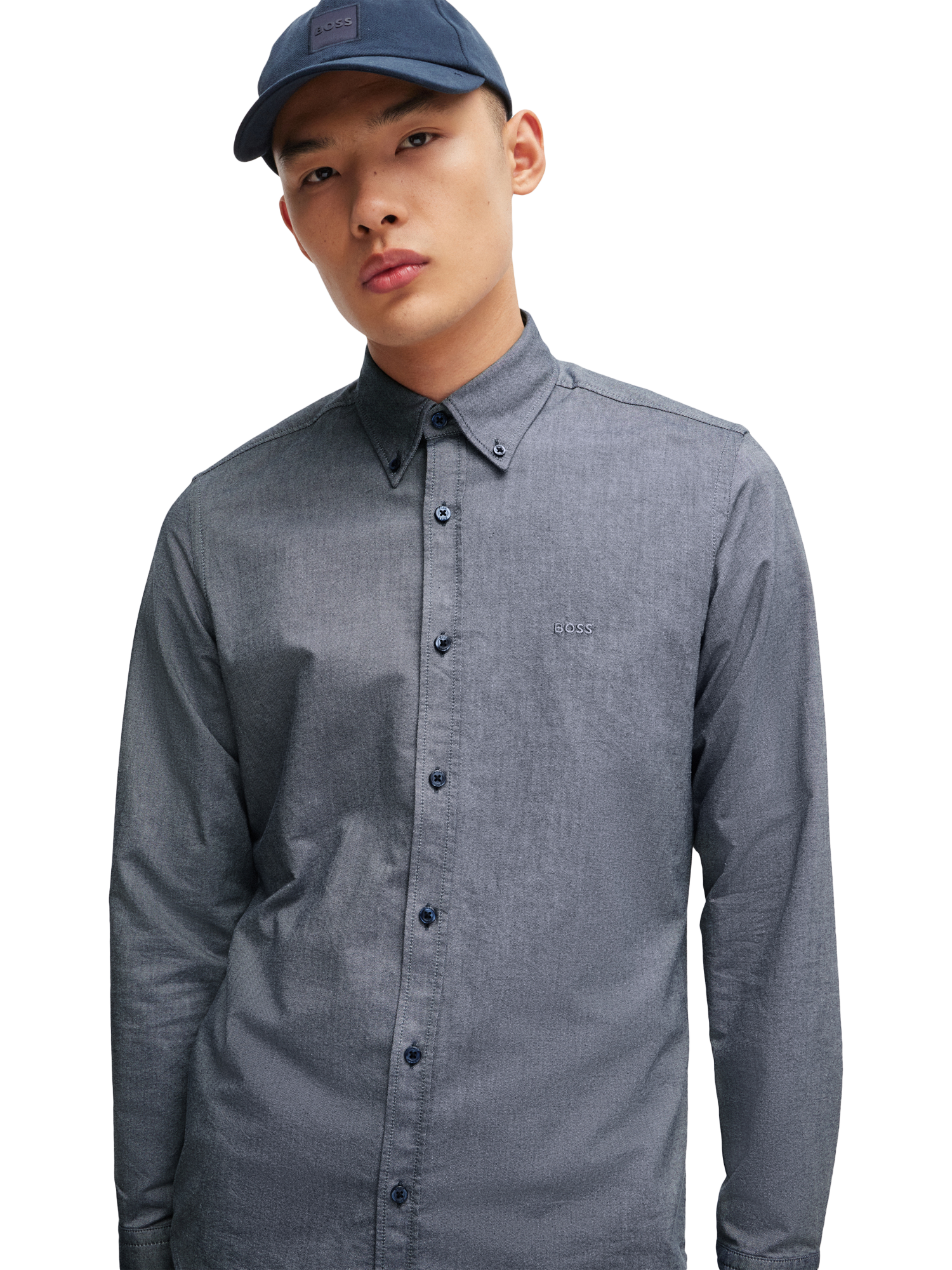 Offering a soft and durable handle, this crisp Oxford shirt from BOSS is cut to a regular fit with tonal logo embroidery to the chest.