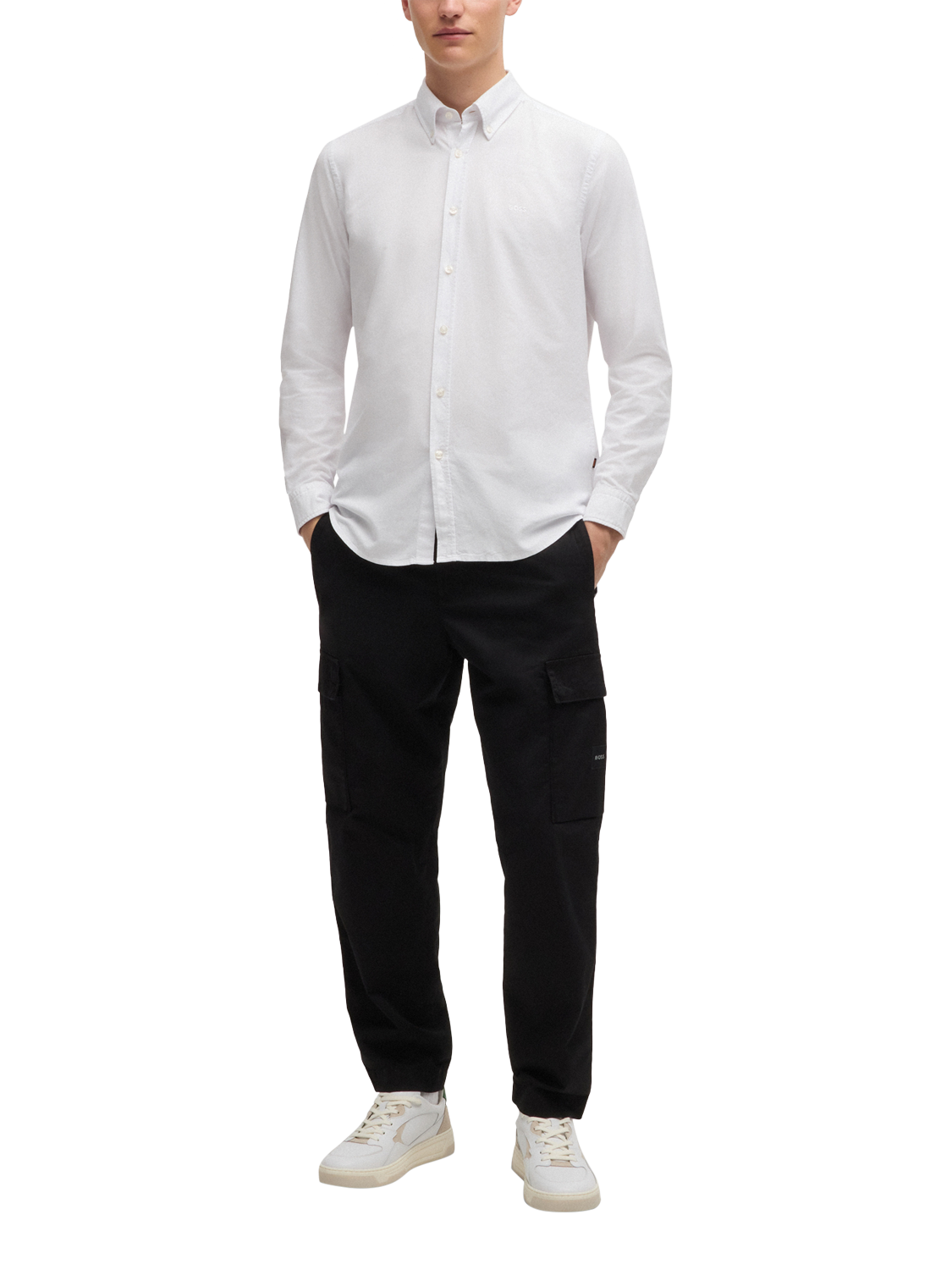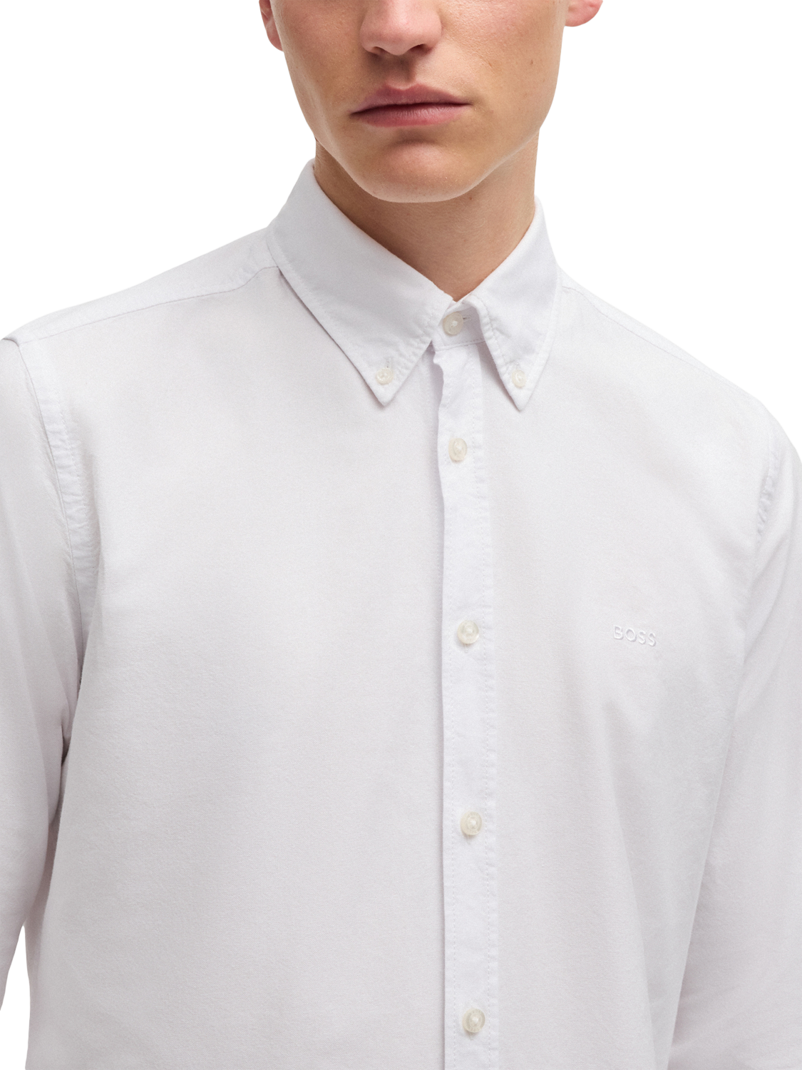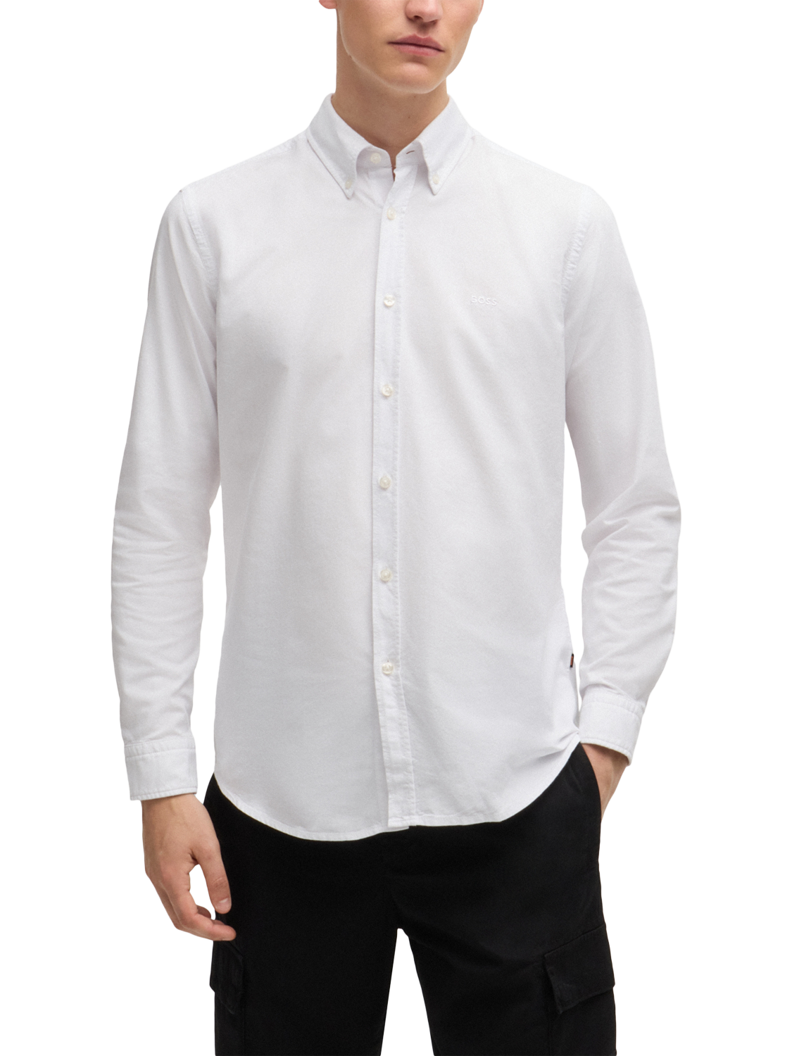 Offering a soft and durable handle, this crisp Oxford shirt from BOSS is cut to a regular fit with tonal logo embroidery to the chest.