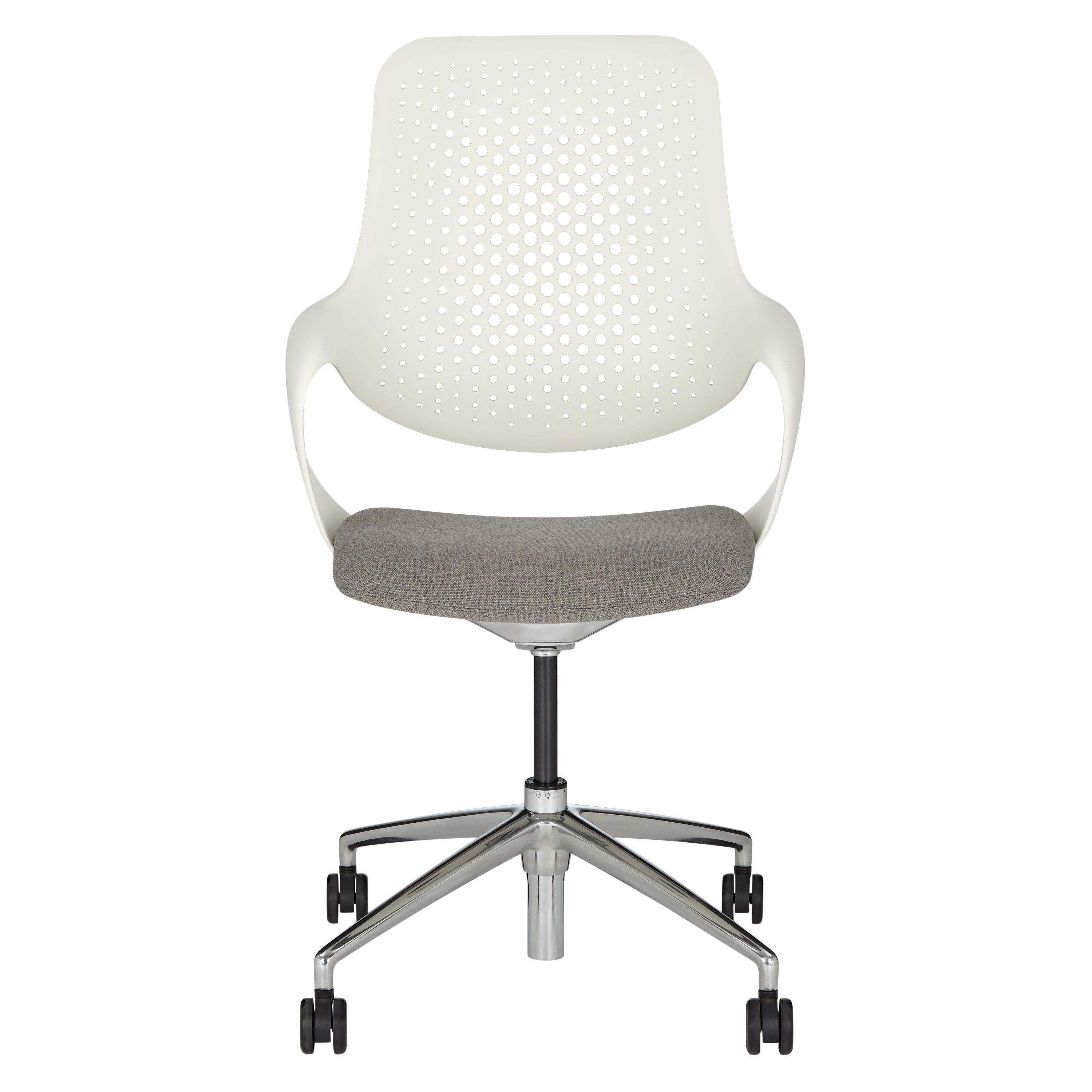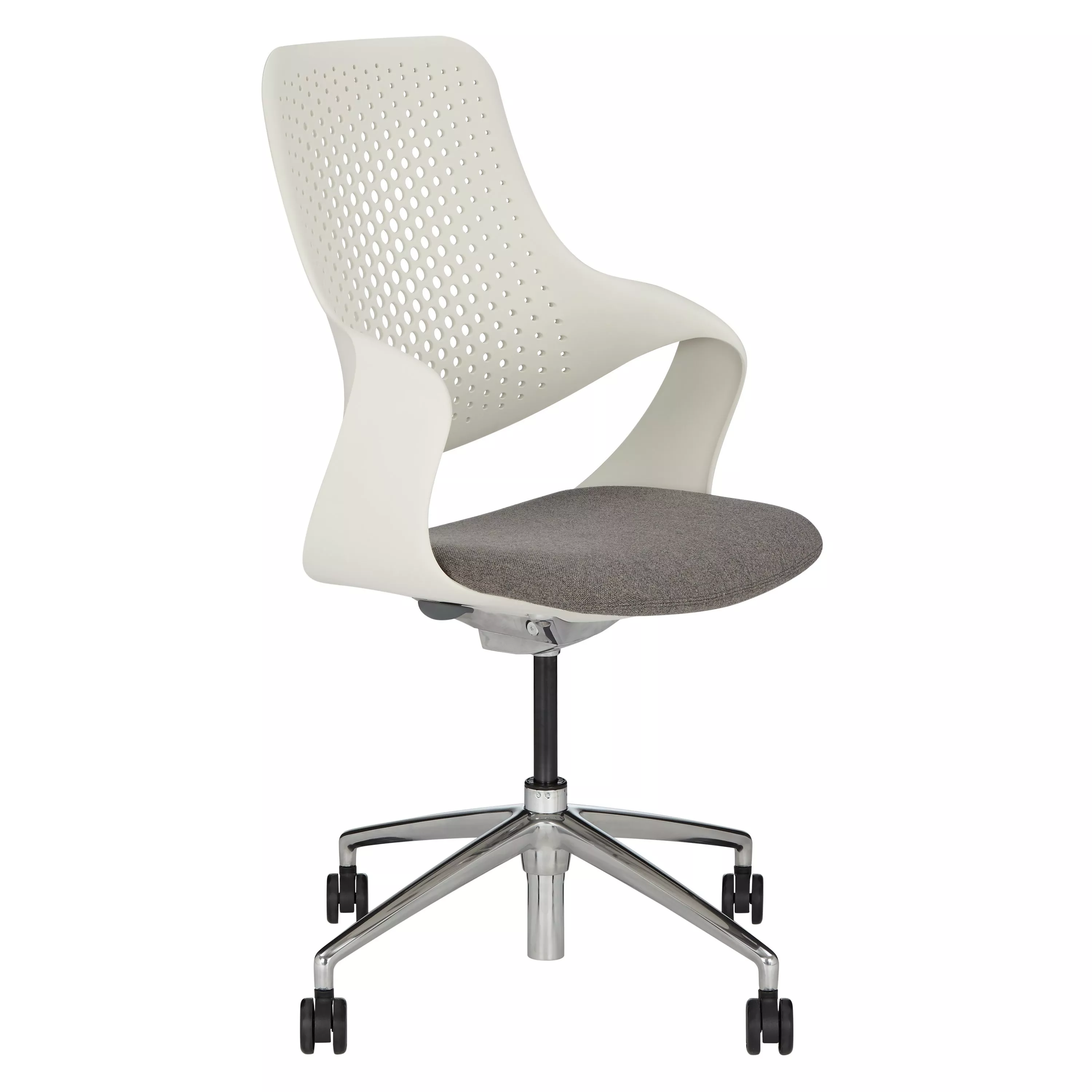 Ideal for the flexible and ever changing office environment, it features an adjustable seat height, mid-point tilt mechanism with dual spring, and comfortable moulded foam seat. The white polymer shell offsets the upholstery to deliver a sleek and contemporary look to take pride of place at any desk.