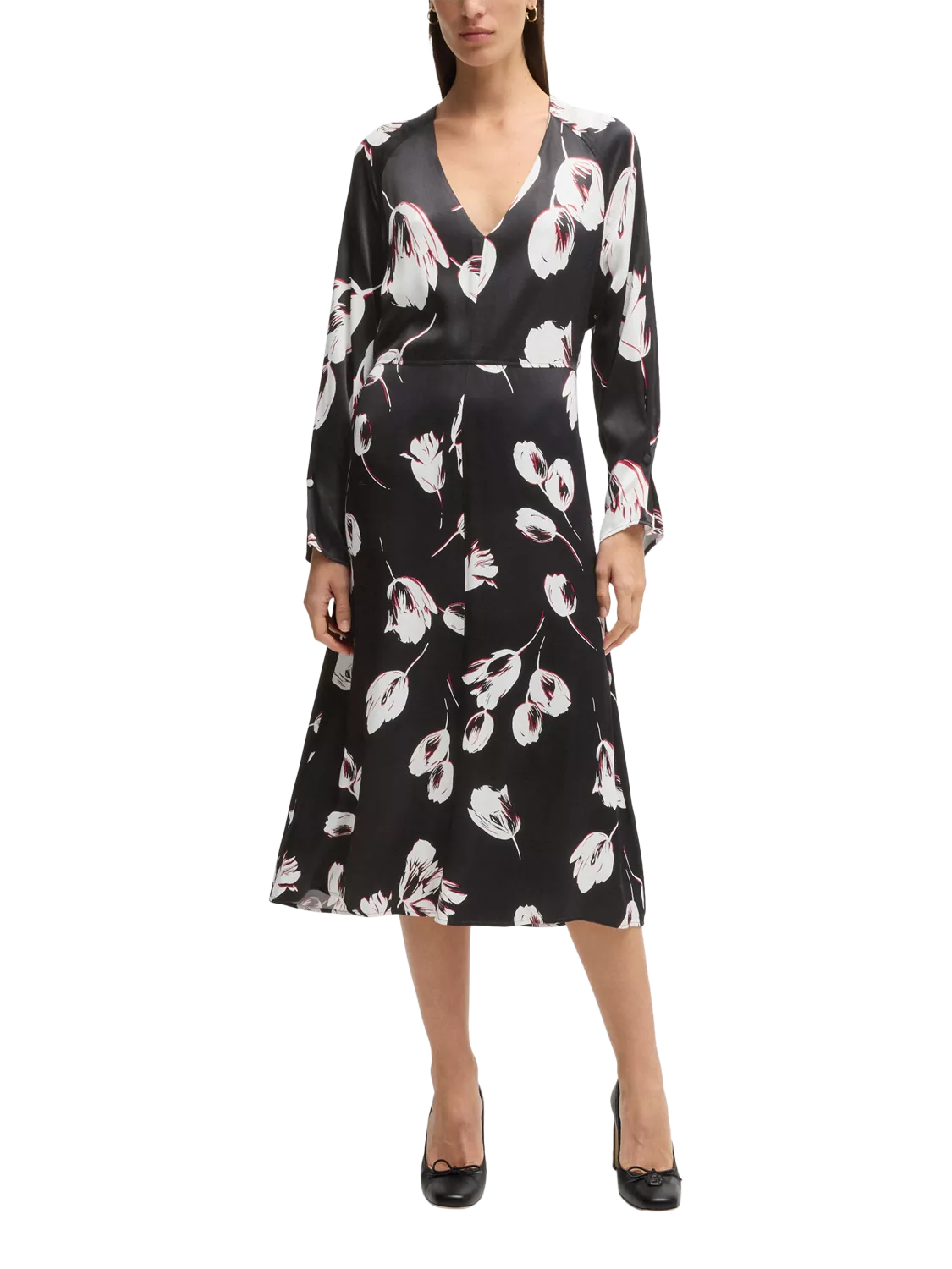 Designed in a fuss-free A-line style, this midi dress from BOSS is made from liquid-like viscose. With a fuss-free but smart v-neckline and full-length sleeves, this style is adorned with a blooming flower print.