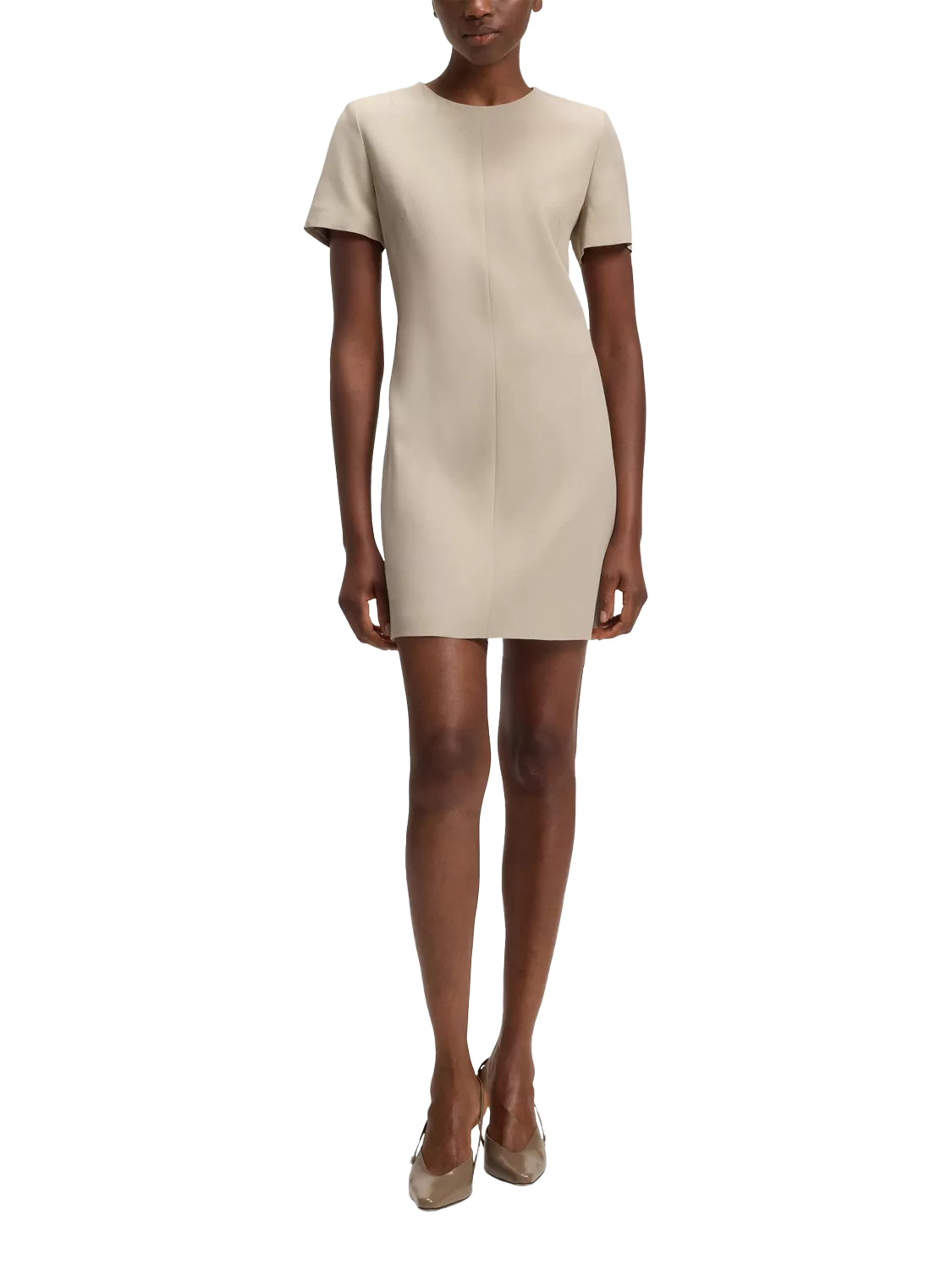 BOSS' mini shift dress in soft viscose – designed for comfort and movement. A round neck and short sleeves keep it simple yet smart, ideal for busy days when you want to look sharp and feel at ease.