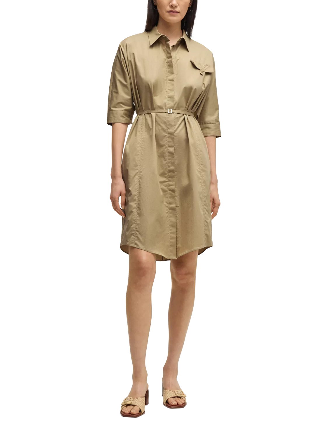 A wardrobe staple that's as versatile as your social calendar, this mini shirt dress from BOSS is blended with cotton. Featuring a collar neckline and elbow length sleeves, this style is minimally detailed for endless wearability.