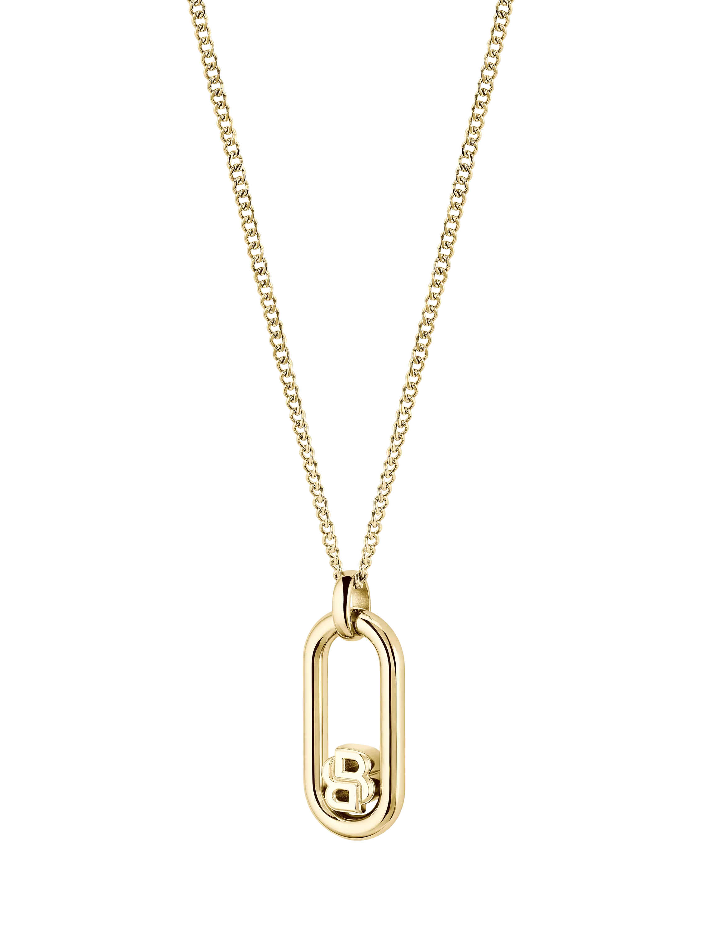 BOSS ladies necklace from the Double B collection. Featuring a gold IP chain with integrated 'BB' branded pendant with lobster clasp closure.