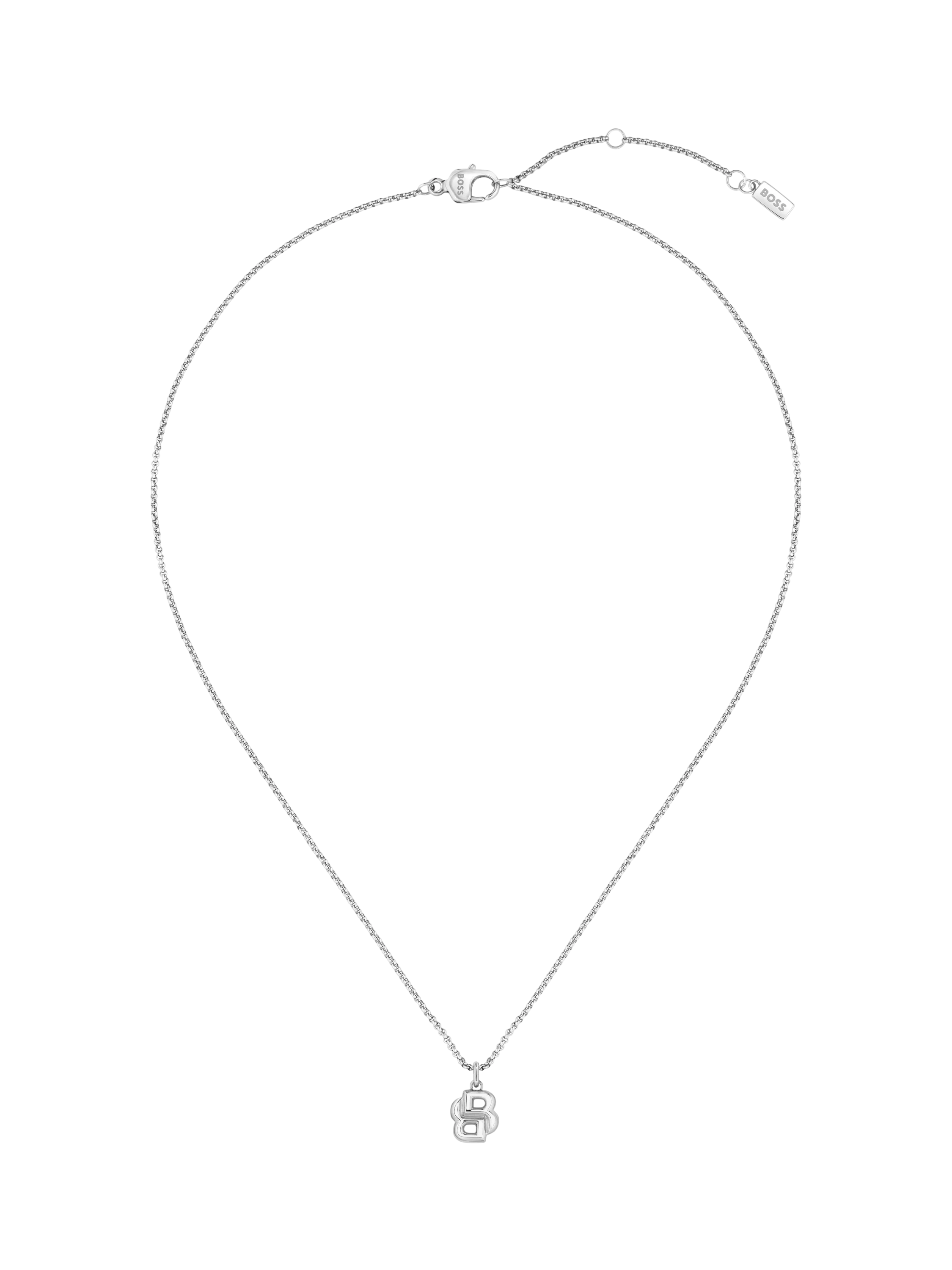 BOSS ladies necklace from the Double B Petit collection. Featuring a stainless steel chain with a delicate Double B pendant finished with a lobster clasp closure. The chain can be adjusted in length for the perfect fit.