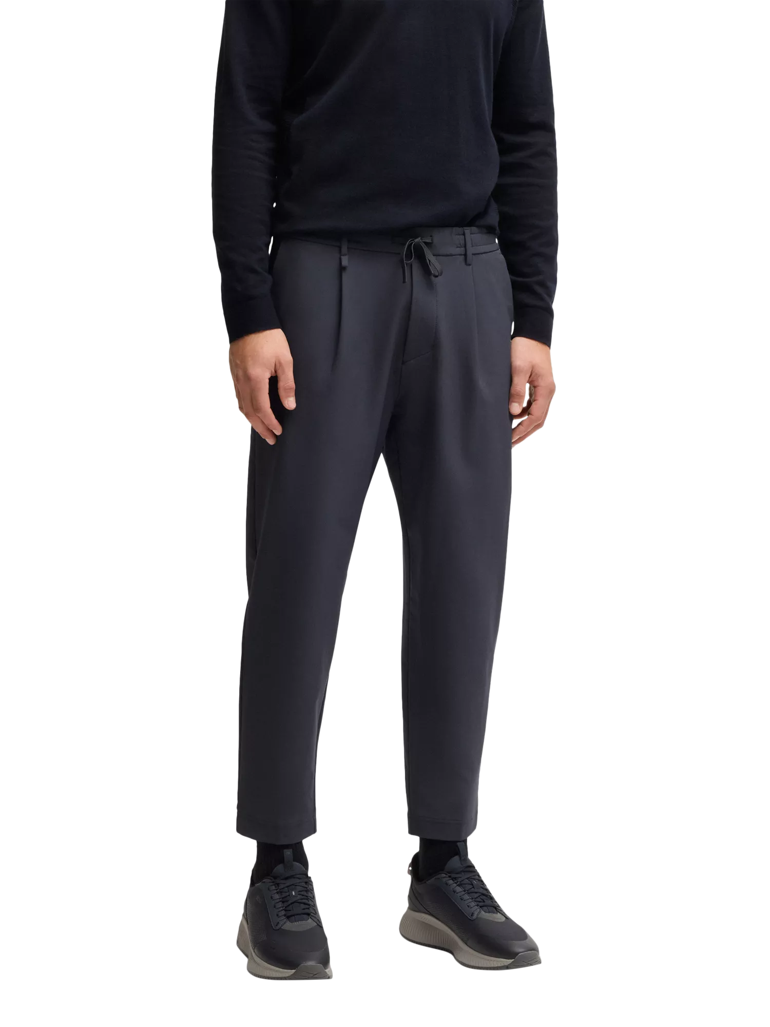For days where comfort takes precedence, these joggers by BOSS come in a tapered fit. Made with recycled technical four-way stretch for maximum freedom of movement, this pair have plenty of features including a half elasticated waistband, french front pockets with integrated cardholder function for wallet free commuting and a rubberised logo on the back pocket.