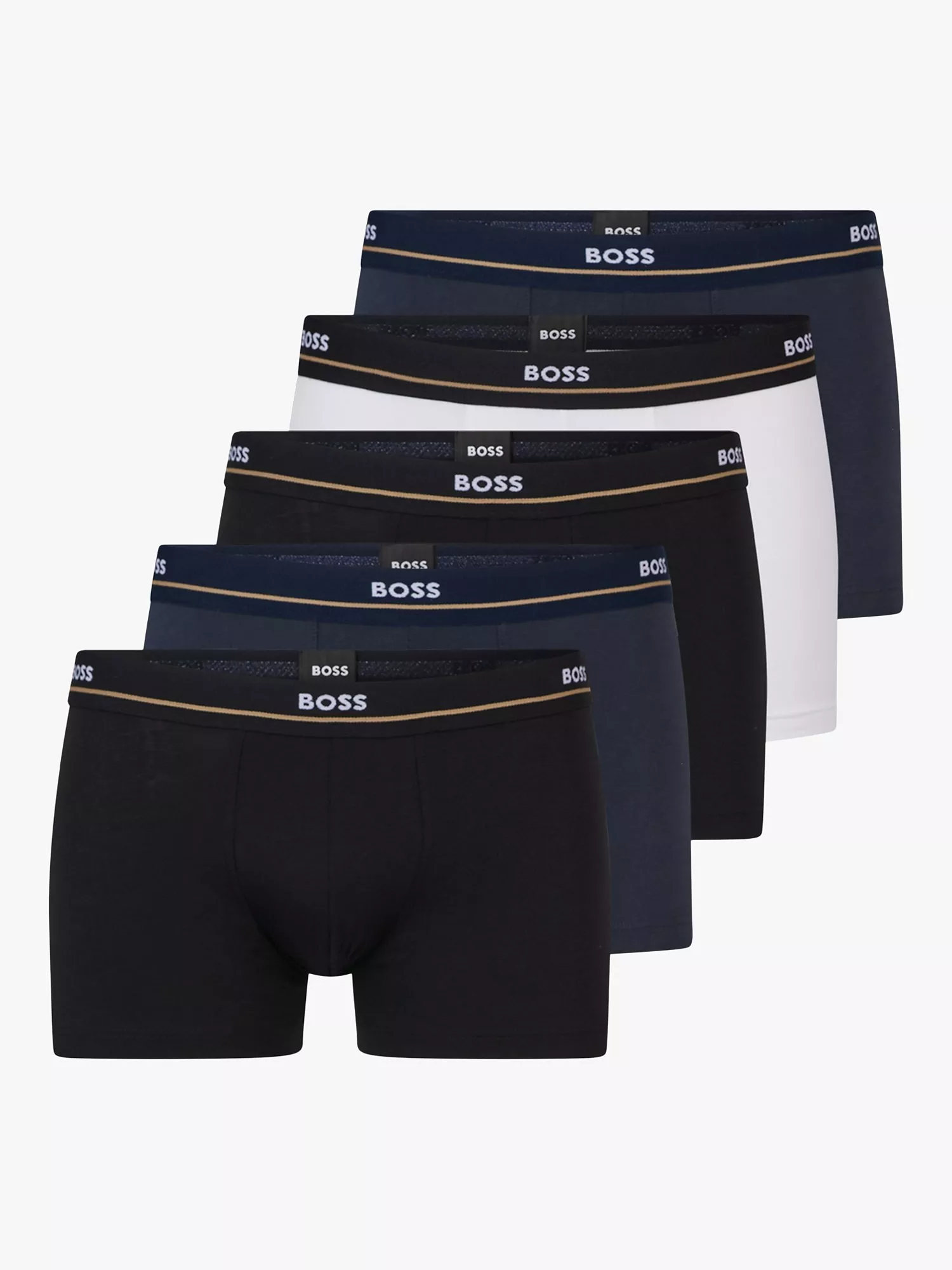 With branding at the elasticated waistband, these trunks from BOSS come in a pack of five and come in a soft cotton blend material for everyday comfort.