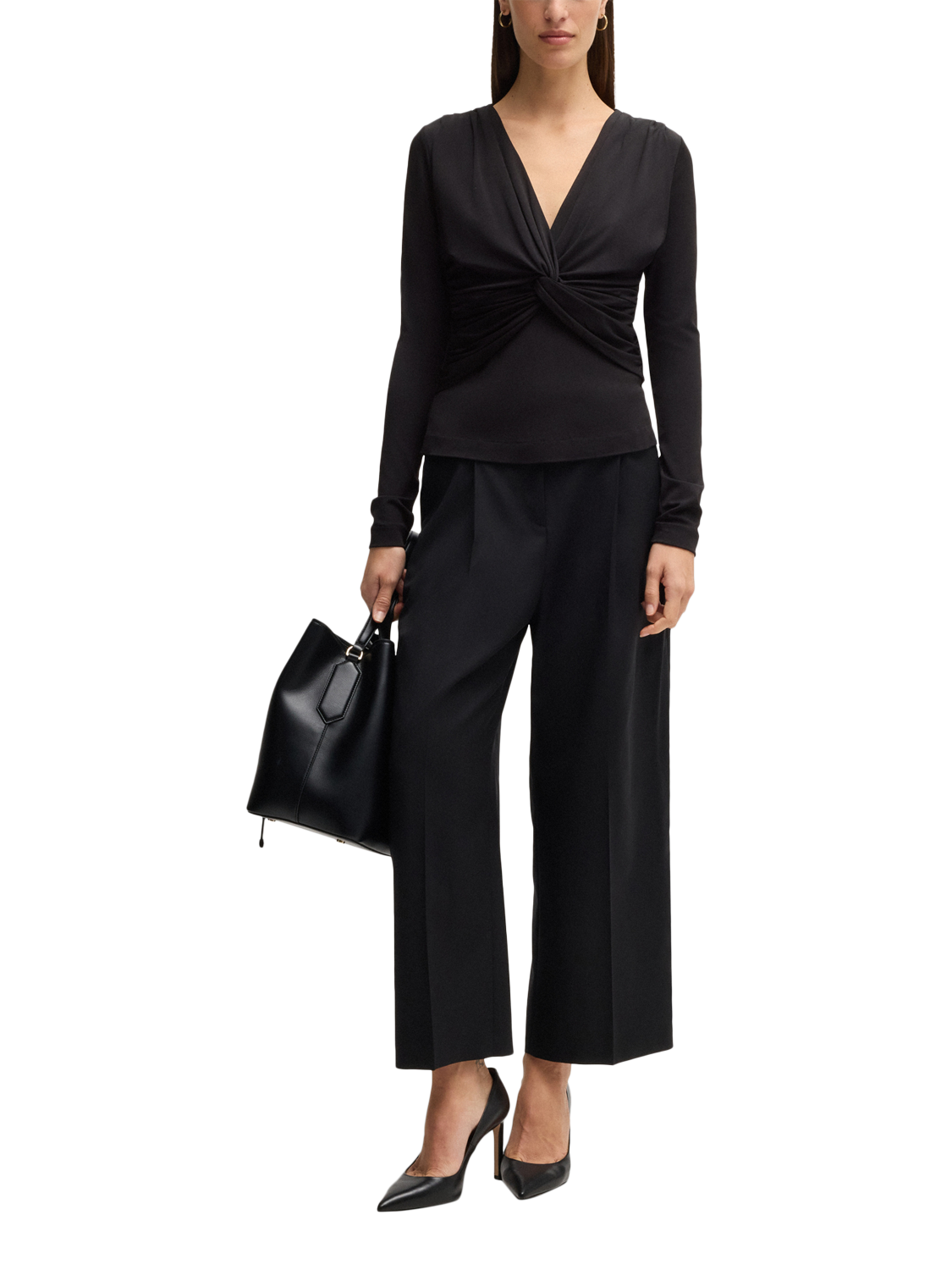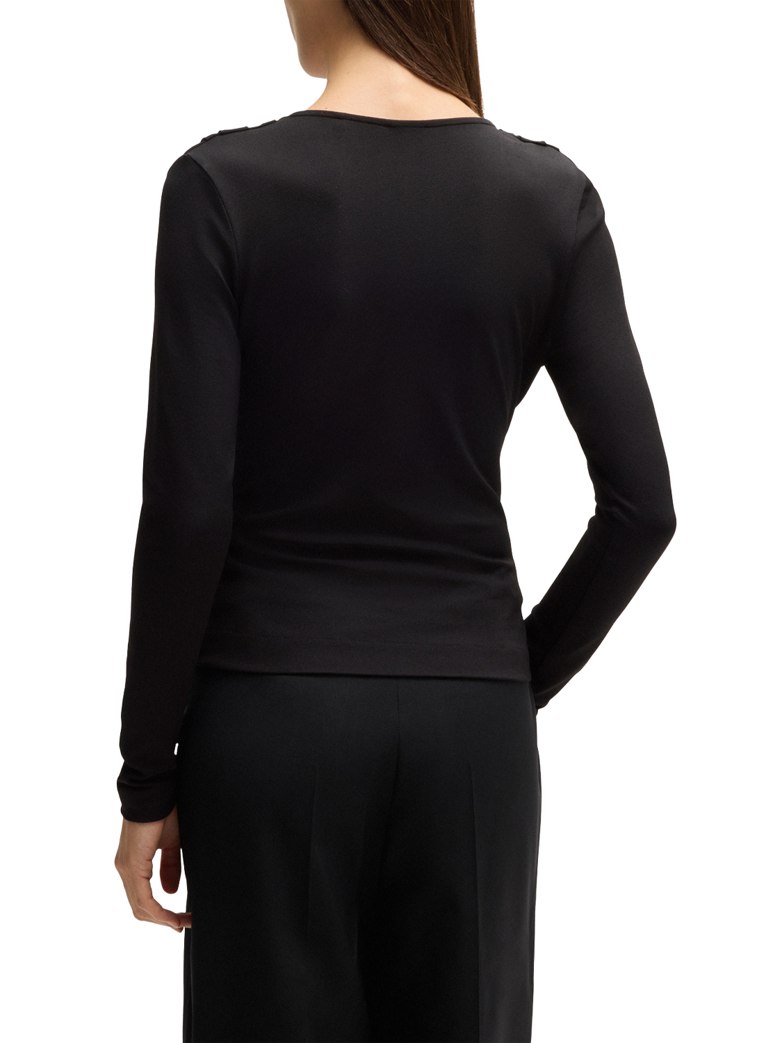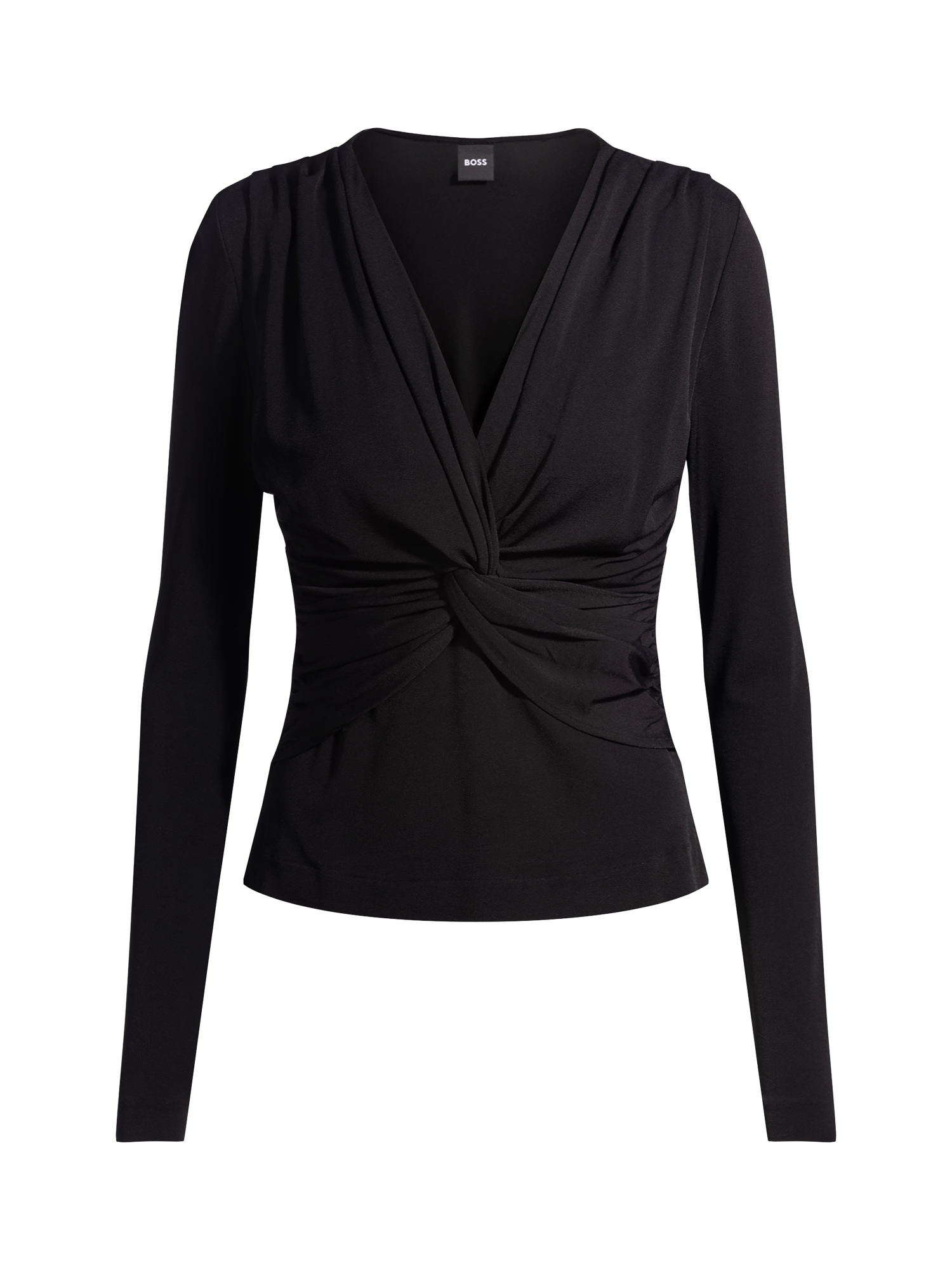 An all-year essential, this twist front jersey top by BOSS features a v-neckline, long sleeves and is made with light yet robust blended fabric for longevity of wear.