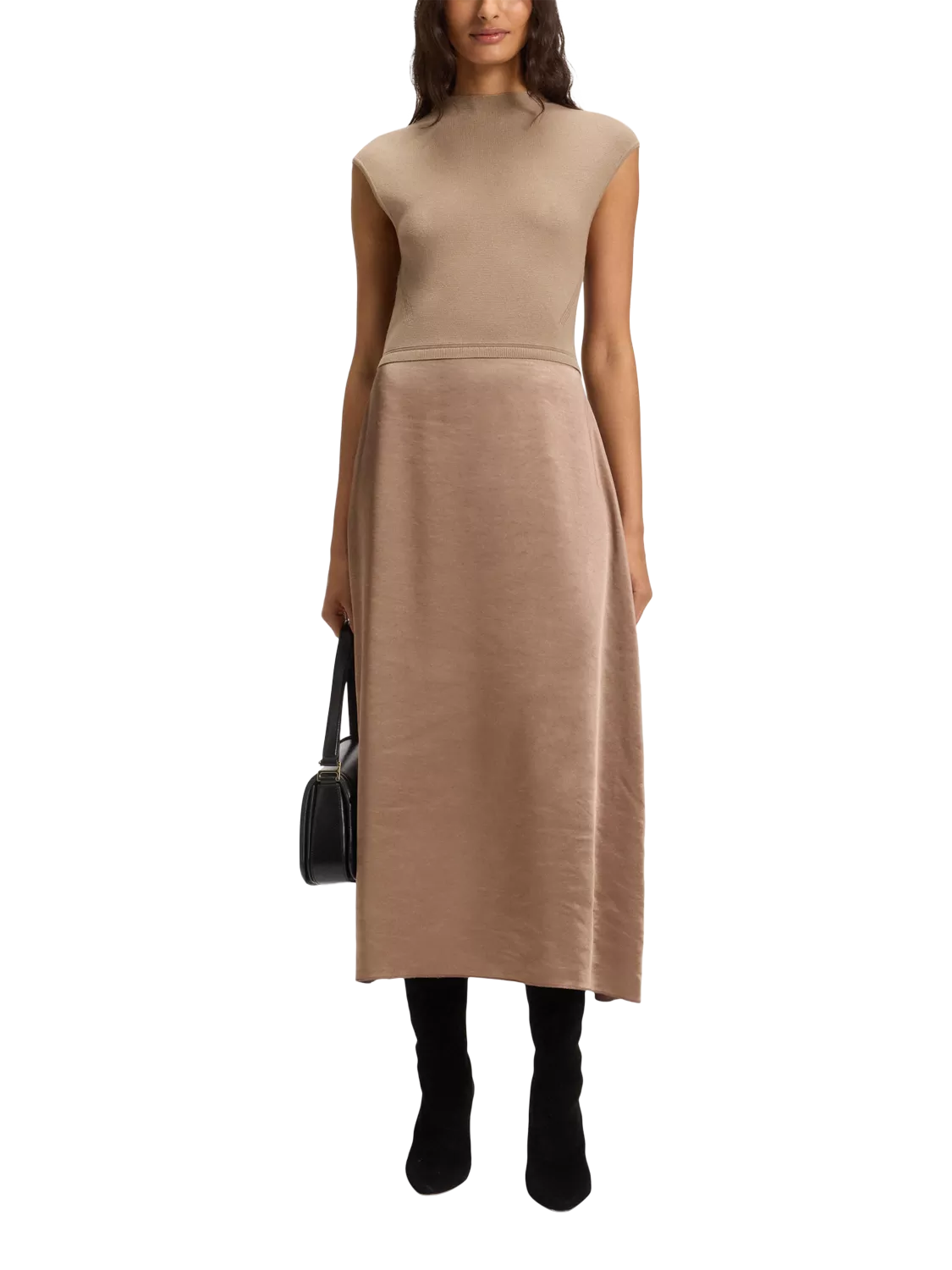 This BOSS midi dress features a graceful A-line shape and regular fit, offering effortless style for your busy days. The cap sleeves and crew neck keep you comfortable and ready to tackle meetings or social plans with ease.