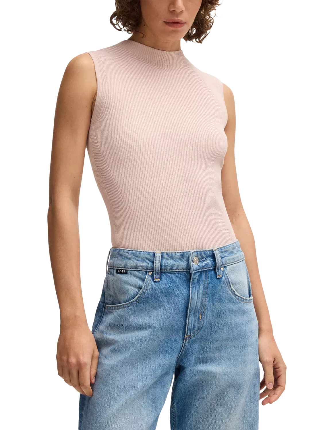 Sleek and elegant with a high neckline, this sleeveless ribbed top from HUGO BOSS will be the first thing you reach for as the weather cools.