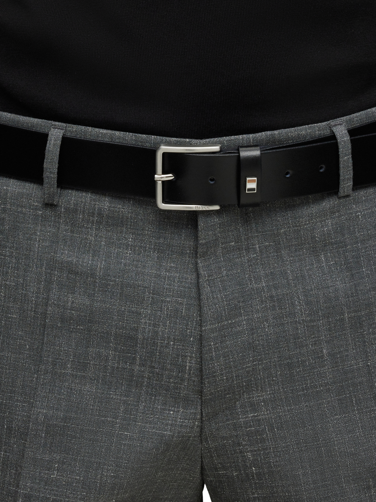 Made in Italy from premium leather, this smart BOSS belt features a sturdy metal buckle with engraved flag detail on the buckle pin.