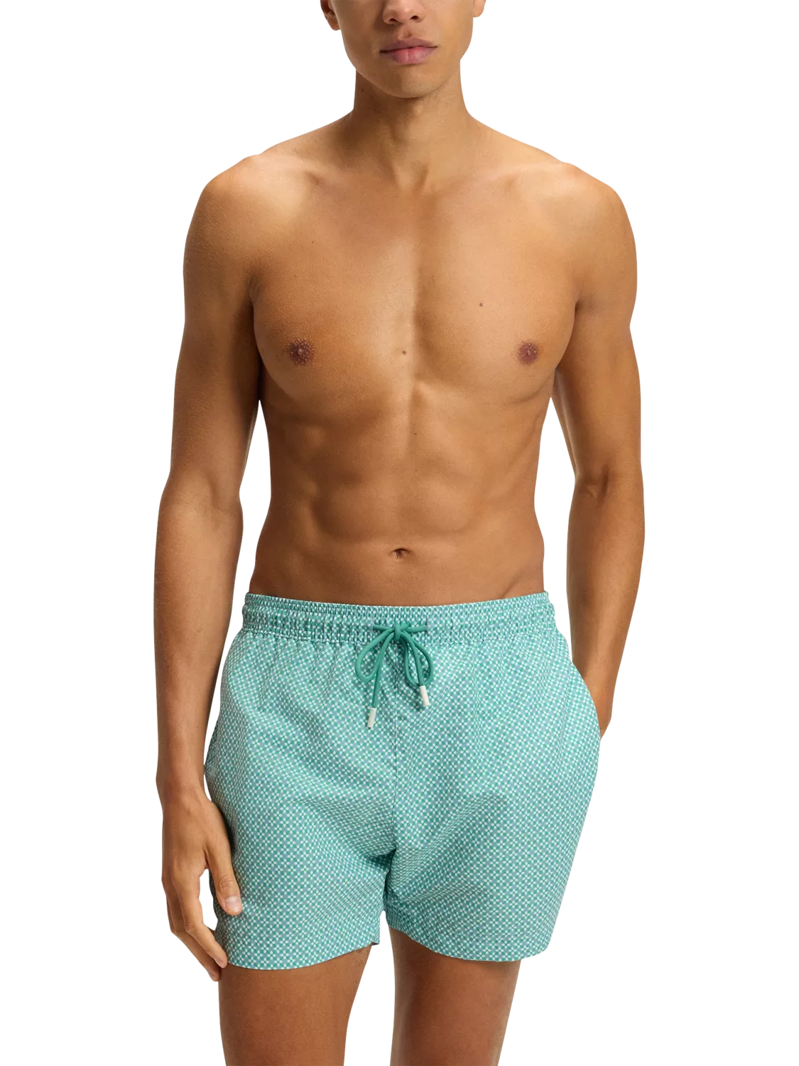 Upgrade your holiday wardrobe with these refined BOSS Menswear swim shorts, featuring a distinctive all-over print. They're fully lined and naturally quick-drying, with a drawstring cord waist.