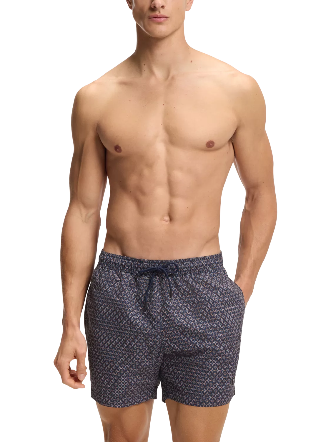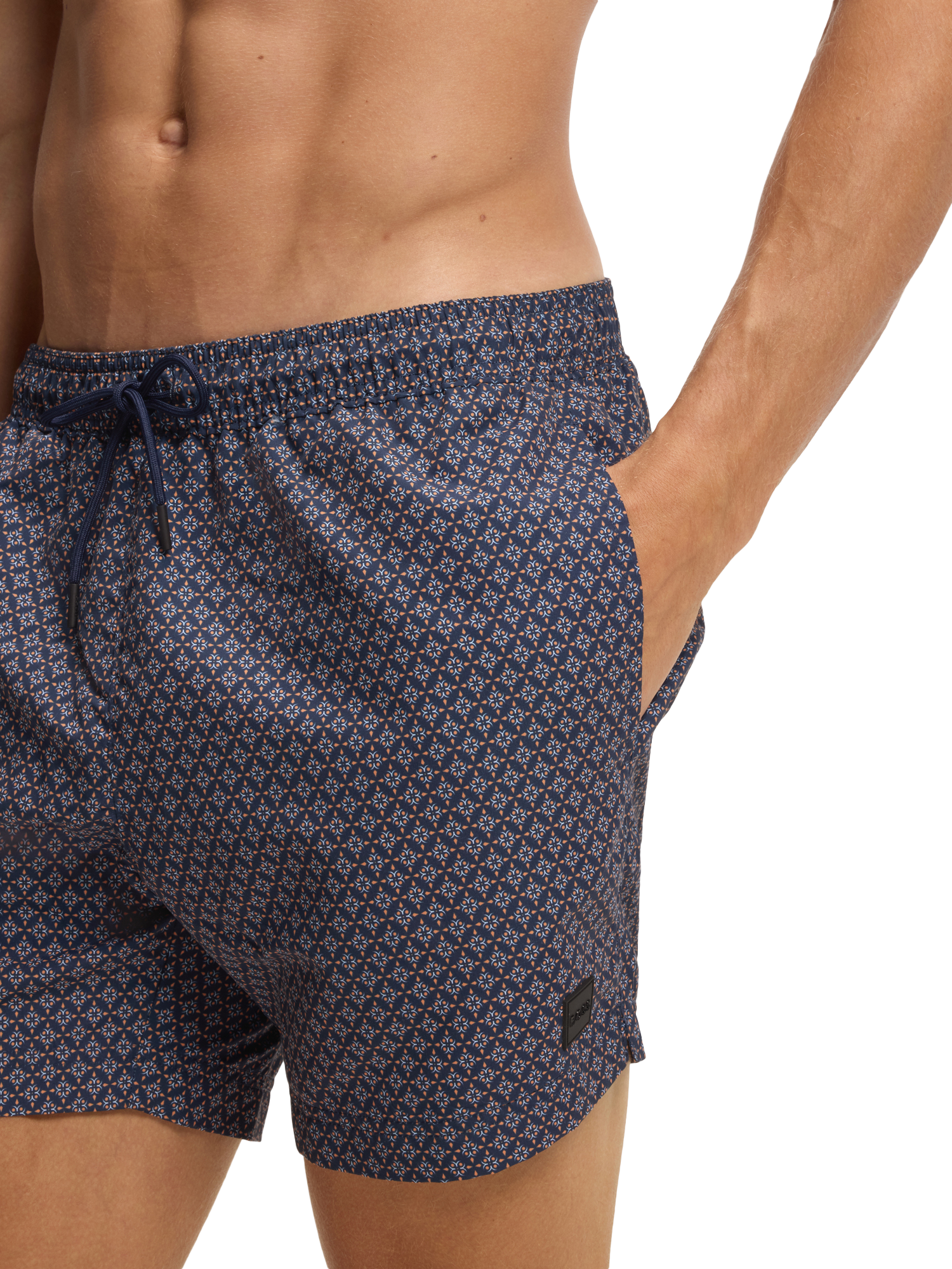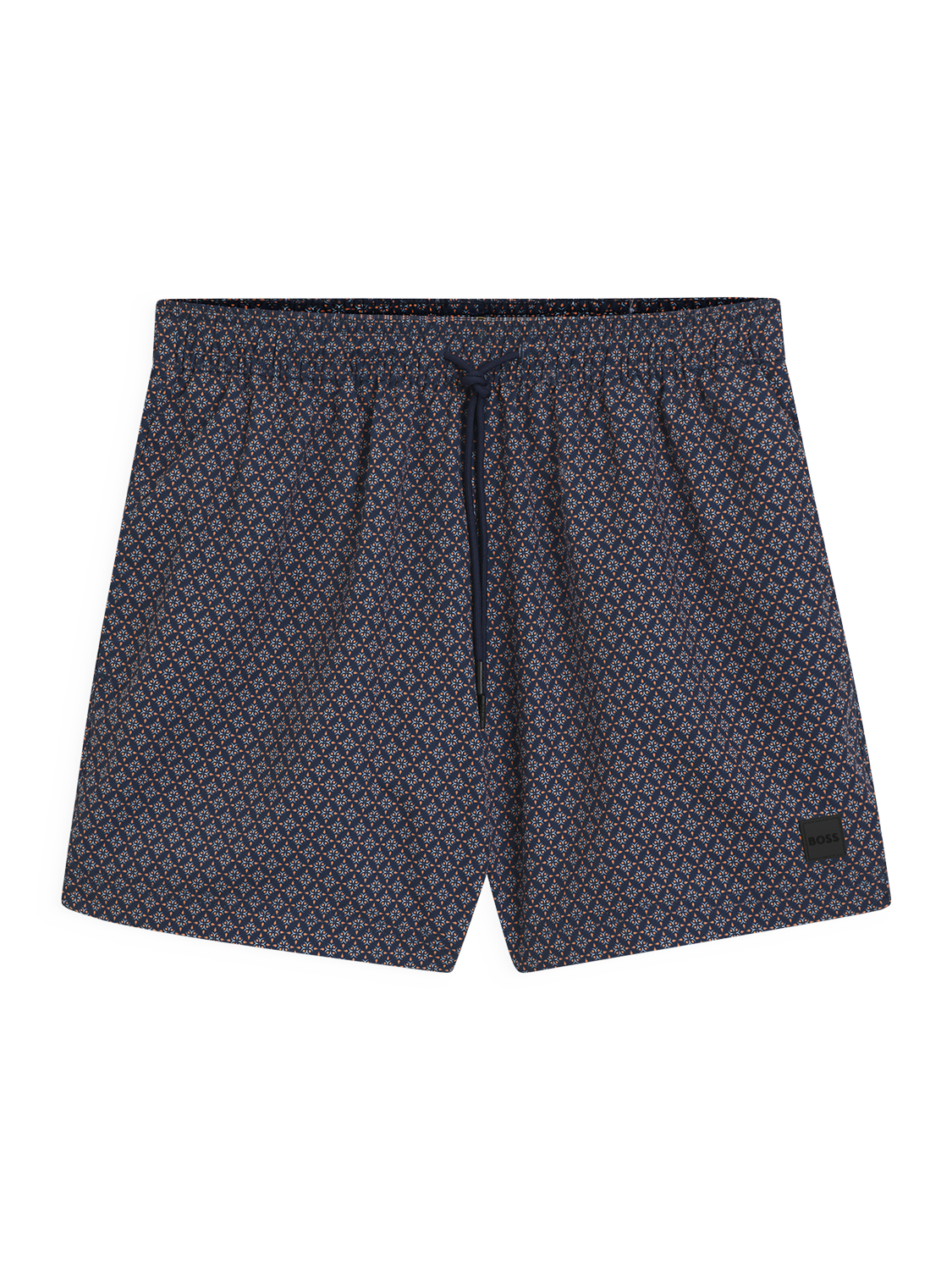 With an intricate all-over pattern and discrete logo embroidery, these swim shorts feature an elasticated waistband while cord ends provide a secure, adjustable fit, and side slits at the hem allow for natural movement. Plus handy side pockets and a rear pocket.