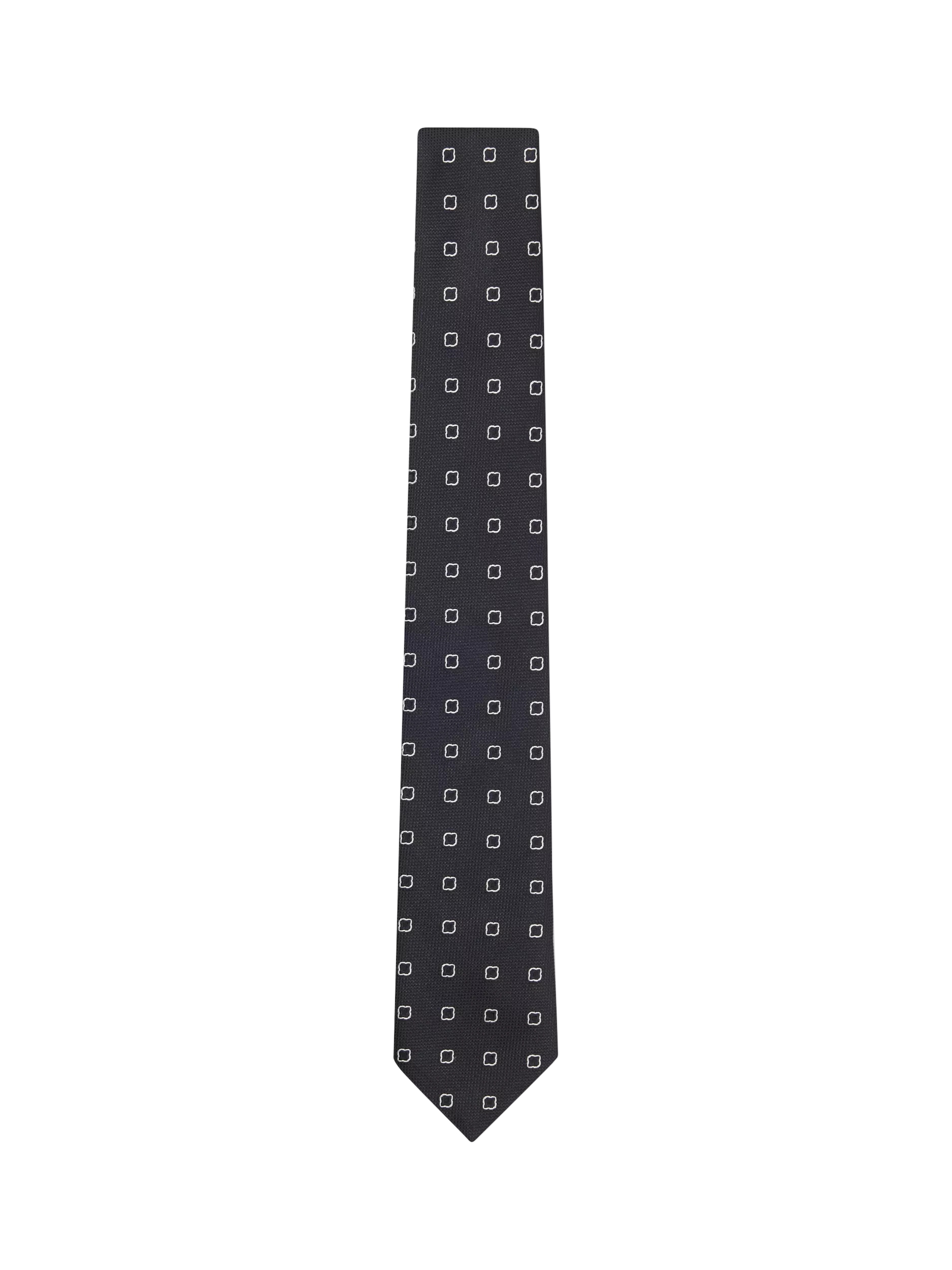 Ideally suited for professional or formal occasions, this tie's geometric design features a sophisticated, repetitive square pattern. The weight of the silk blend allows for a perfect, secure knot that holds its shape throughout the day.