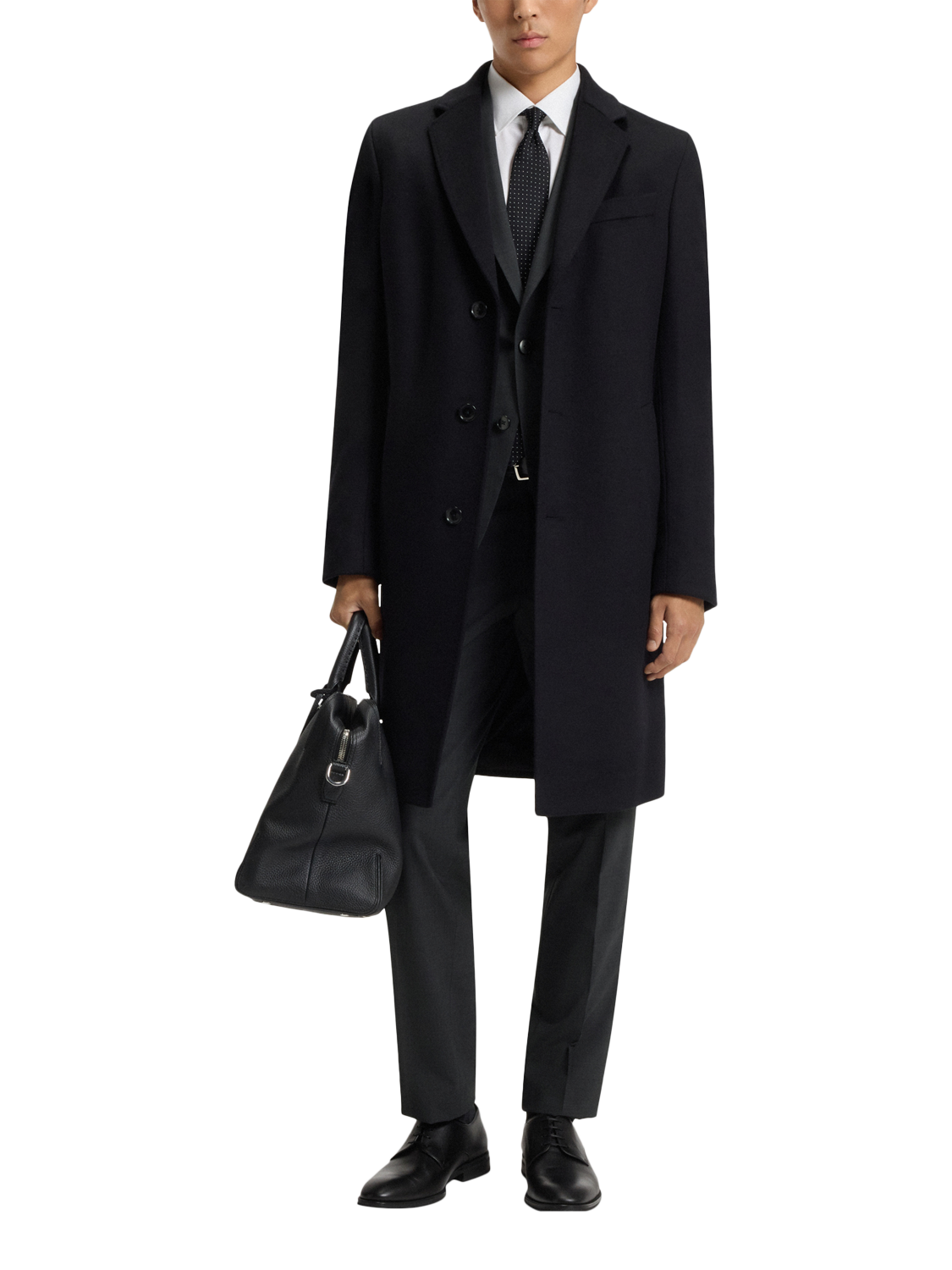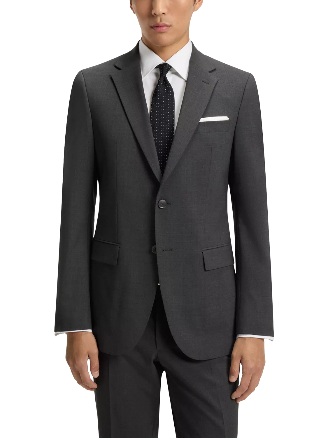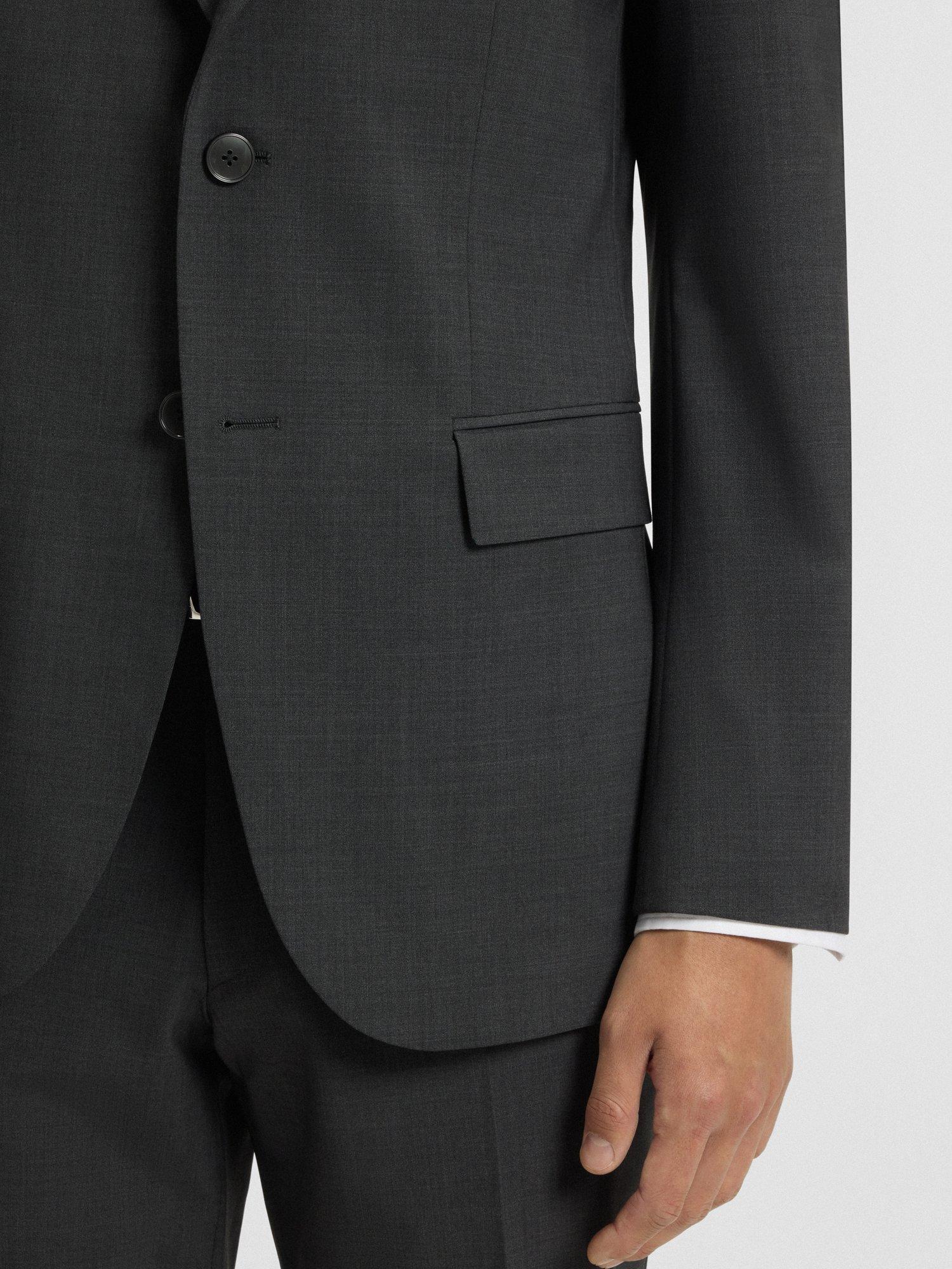 Tailored from a wool-rich blend, this single-breasted jacket features classic notch lapels and a secure button front. Its refined construction ensures a sharp, sophisticated silhouette for any formal occasion.