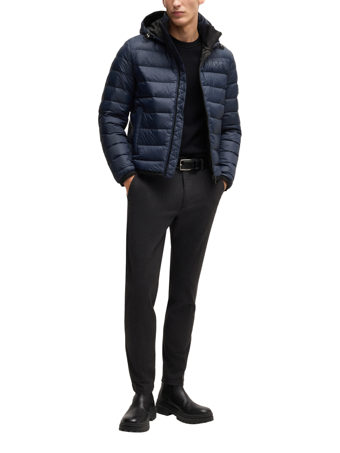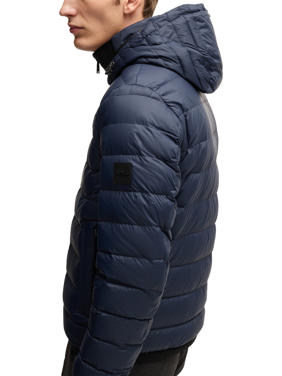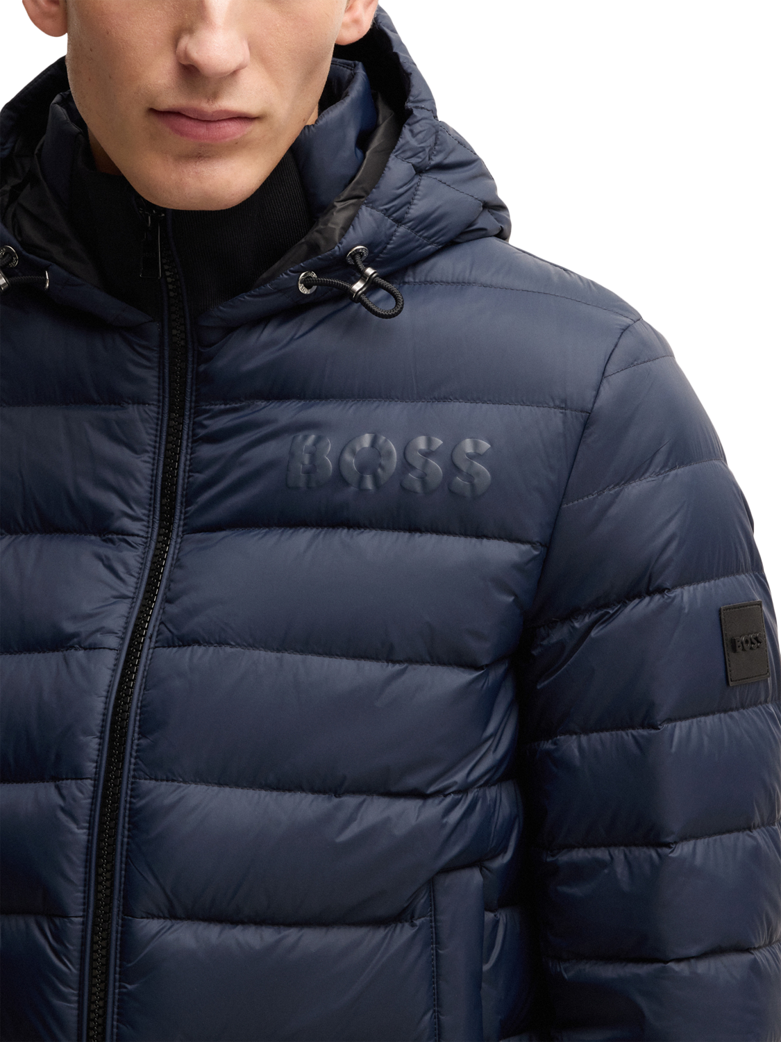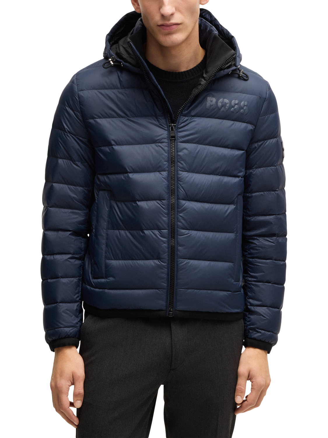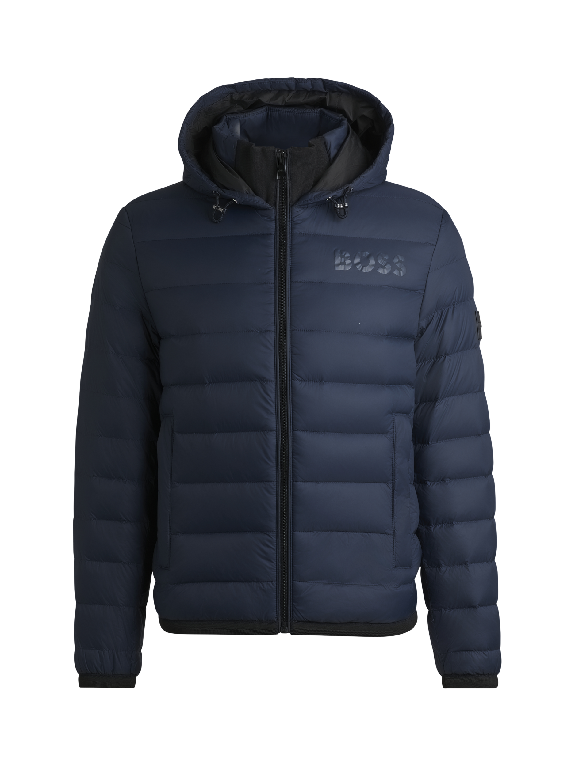 With its classic padded shape and reliable protection against the cold, reach for this quilted jacket from BOSS. Featuring a cosy hood with drawstring tabs, side pockets and a zip front, it's finished with a branded patch to the sleeve.