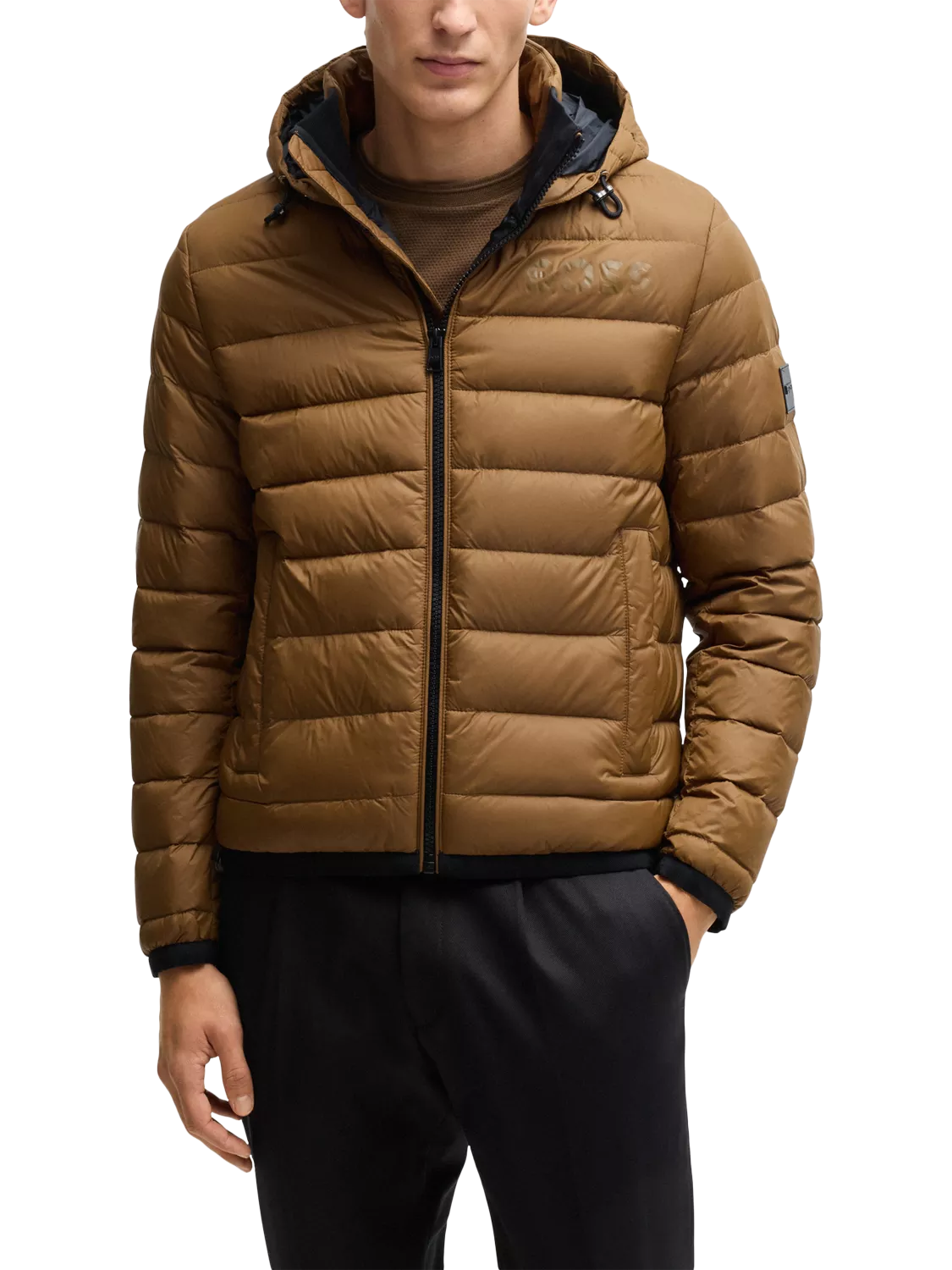 With its classic padded shape and reliable protection against the cold, reach for this quilted jacket from BOSS. Featuring a cosy hood with drawstring tabs, side pockets and a zip front, it's finished with a branded patch to the sleeve.