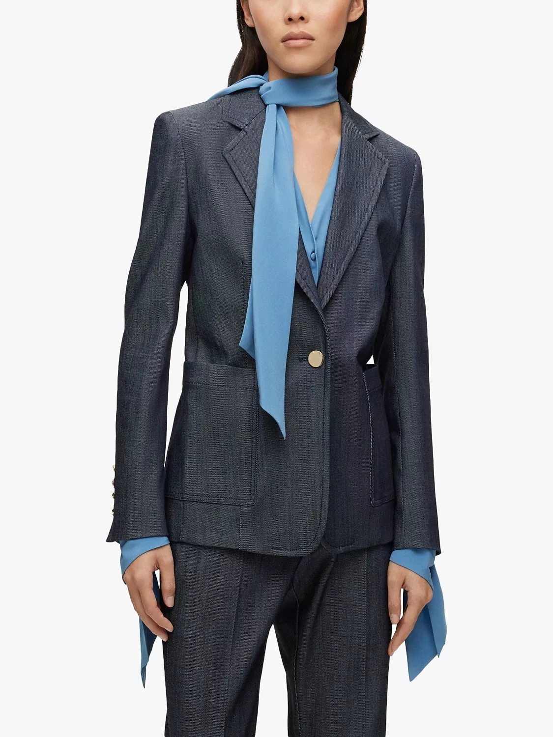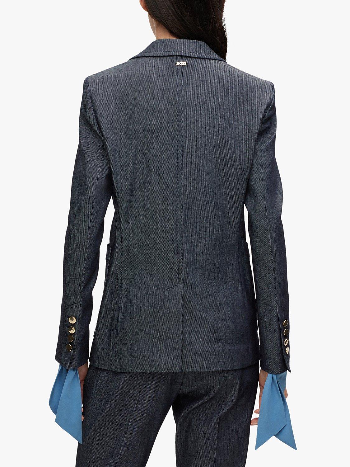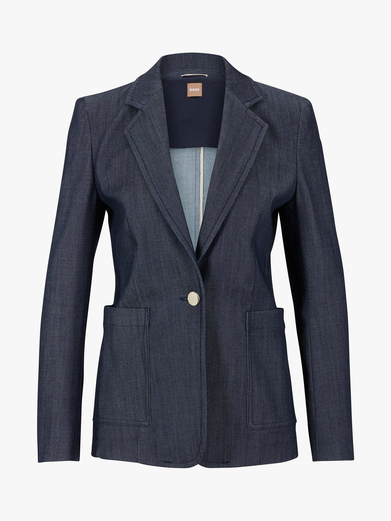 An elegant layering piece for smart events, this blazer by BOSS sits at the hips for practical coverage.
