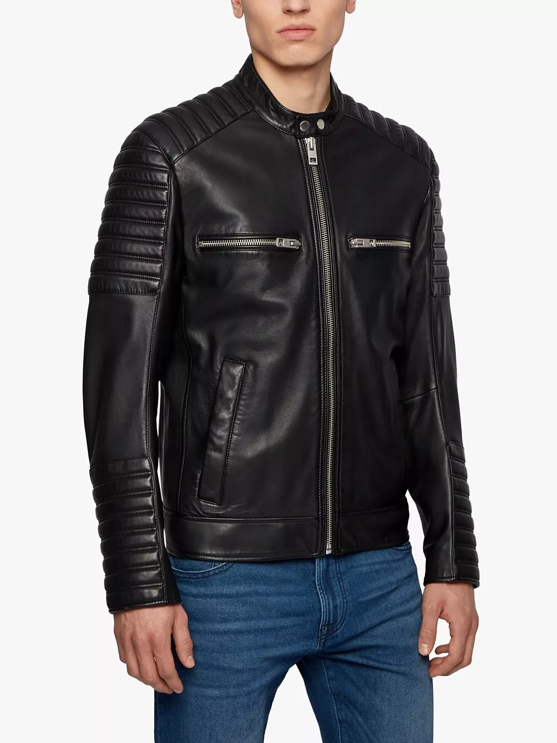 Channel a rebellious aesthetic with this biker jacket from BOSS. Featuring quilted details on the sleeves and across the shoulders, this one features a full zip front and is complete with side and chest pocket detailing - perfect for keeping loose essentials close by.