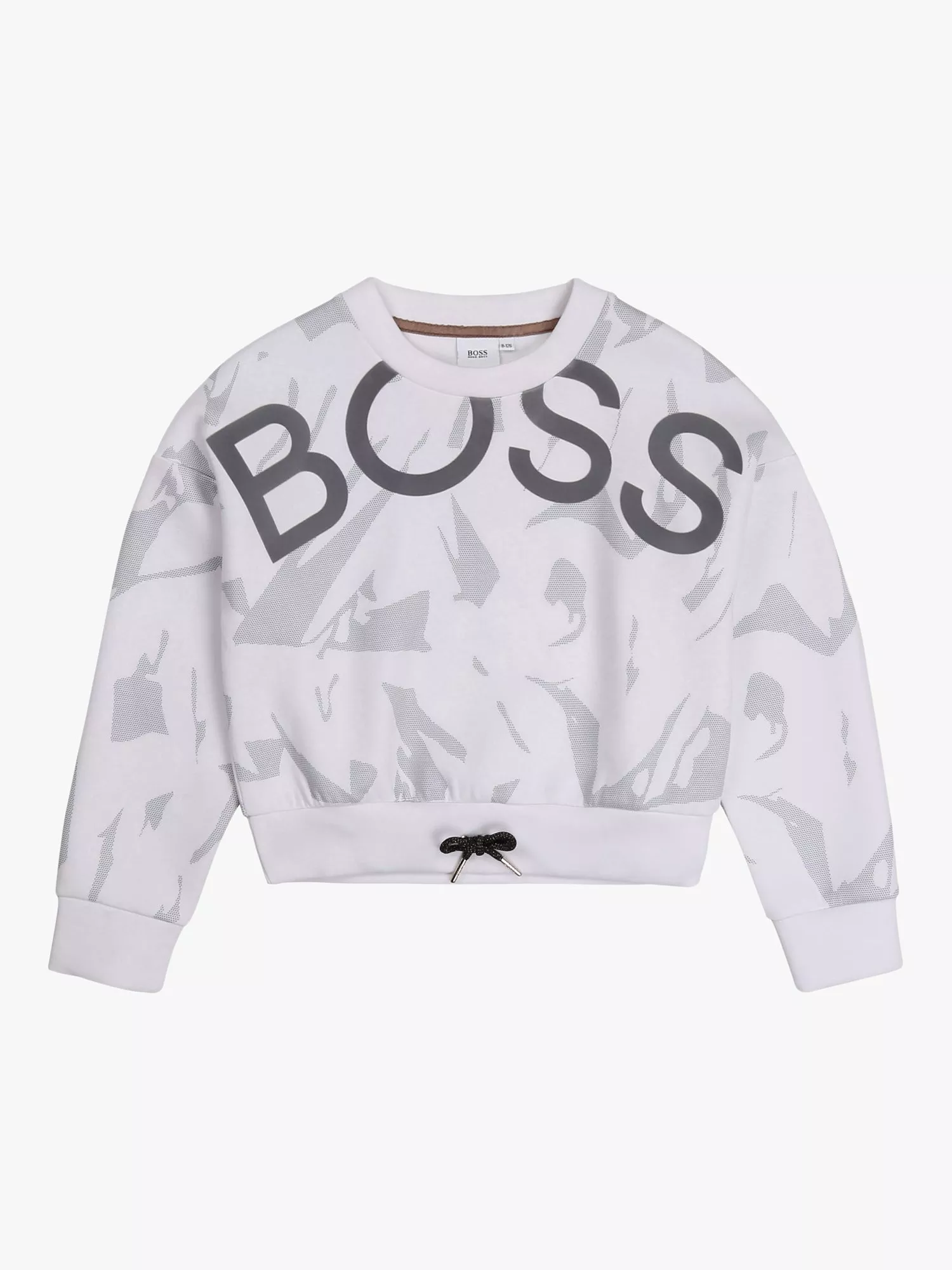 Inspired by the adult line, this children's cropped sweatshirt is a stylish wardrobe staple. It features dropped armholes and a decorative bow at the waist. It's completed with an all-over abstract modern print and the BOSS logo flocked on the front.