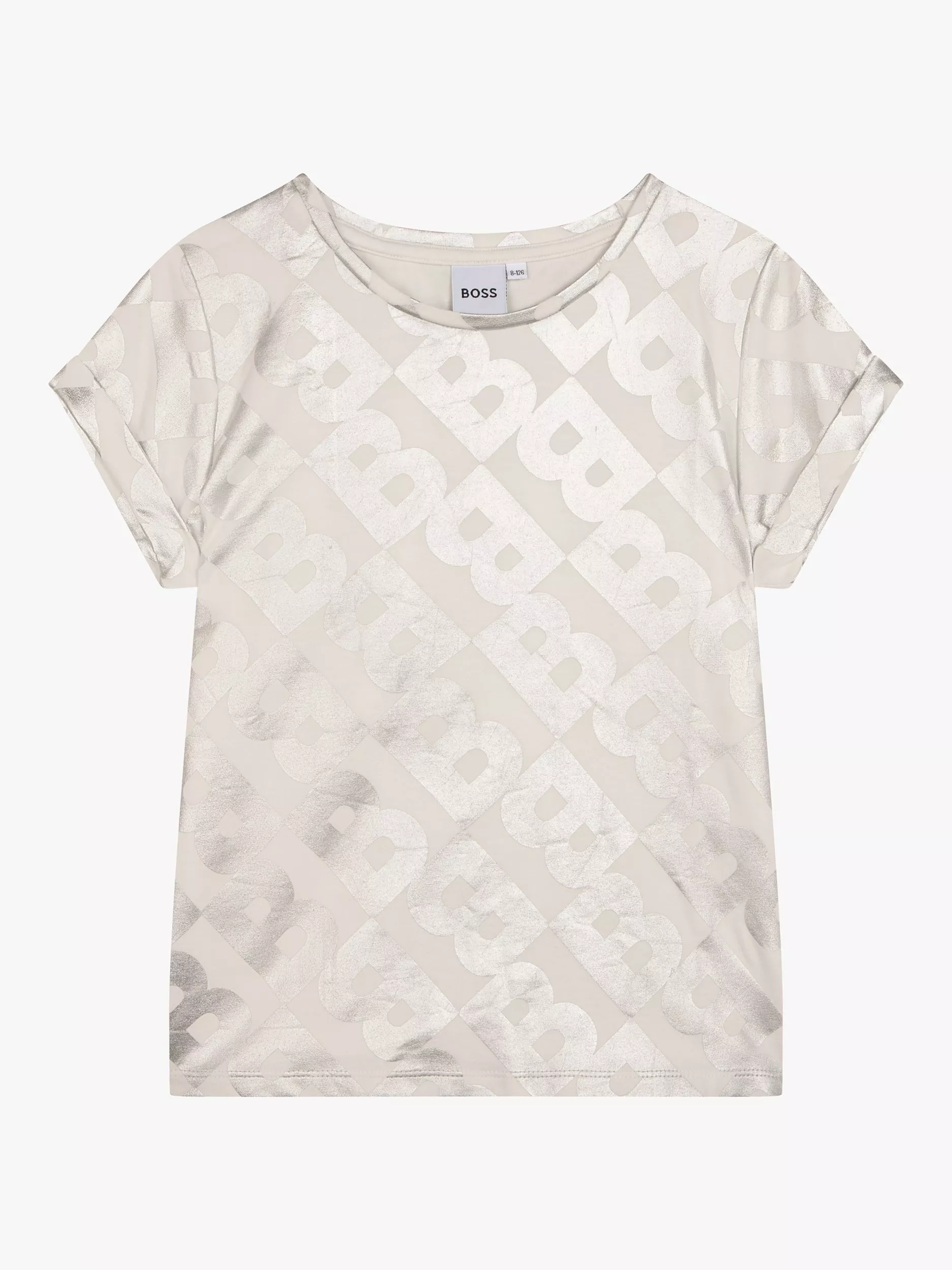 Decorated in a bold monogram print and made in a cotton-stretch jersey, this short-sleeved t-shirt features turn-ups on the sleeves and a branded woven label on the side.