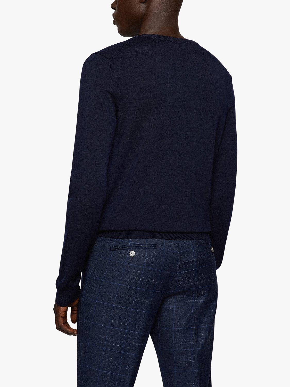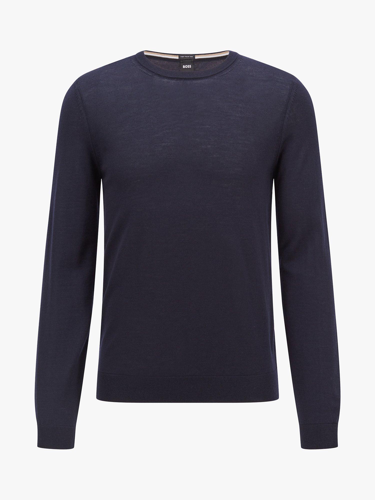A wardrobe classic, this wool jumper comes in a tried and tested crew neck style and is finished with signature stripe detailing inside the collar.