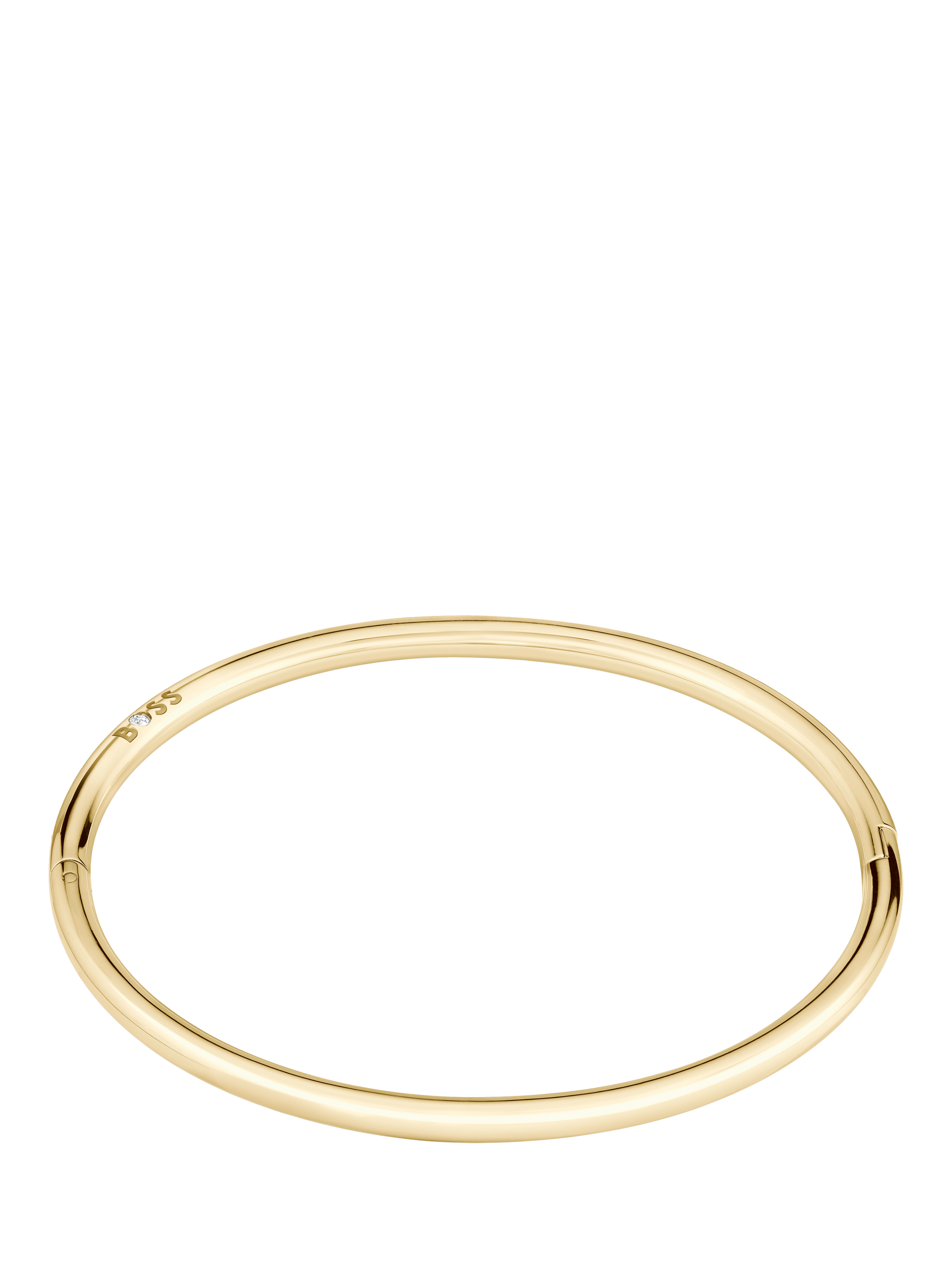BOSS ladies' bangle bracelet from the Live collection. Featuring subtle BOSS branding, crystal detail and hinge closure.