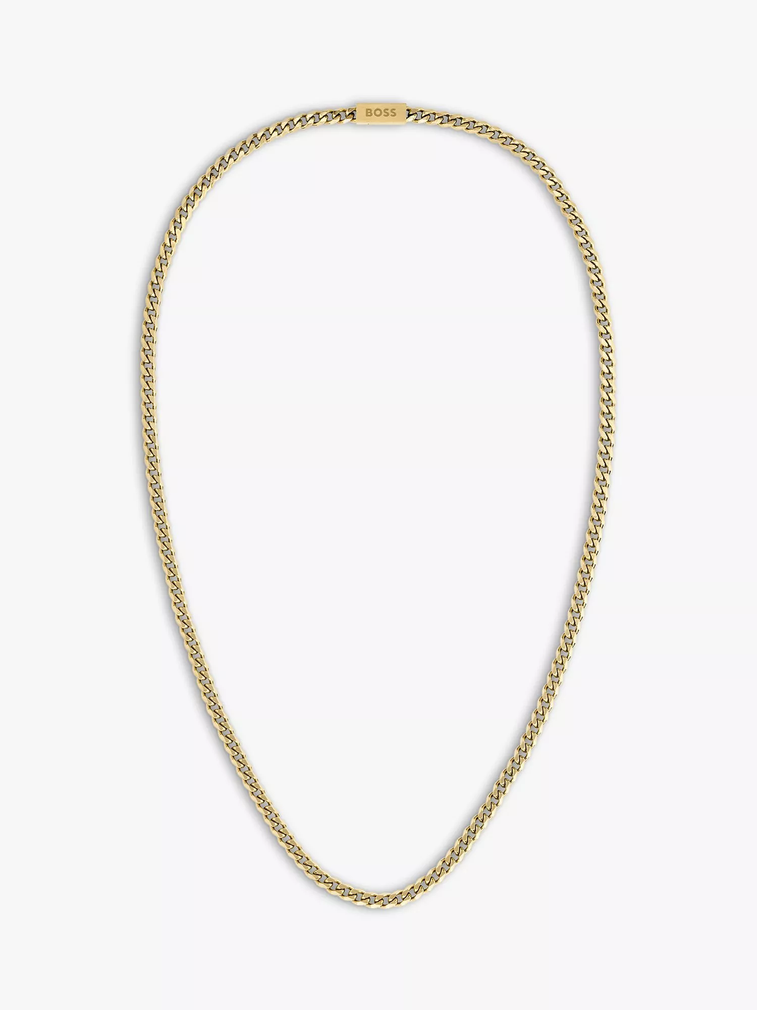 From the Him collection, this BOSS chain necklace is simplicity at its best. The curb link chain is secured with a logo-engraved magnetic closure.
