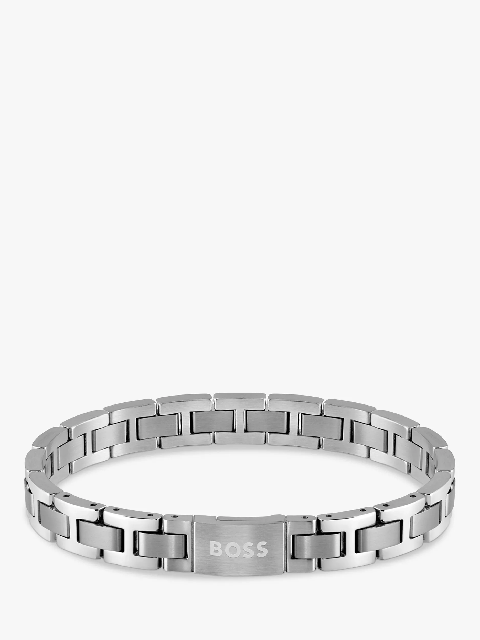 From the Metal Link Essentials collection, this BOSS bracelet presents a brushed design with H-shaped links. Securing with a logo-engraved magnetic closure, the piece can be worn alone or in combination with a BOSS watch.